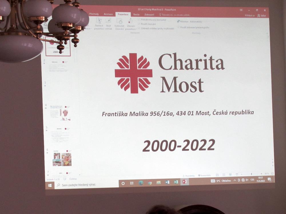 Ve čtvrtek 15. září 2022 se konalo Slavnostní setkání spojené s vernisáží výstavy k výročí 100 let Charity Česká republika a 22 let trvání Charity Most. Výstava představila činnost největší neziskové organizace v sociální oblasti v České republice. Byly použity obrazové a textové materiály z historie i současnosti Charity ČR a její organizační složky Charity Most i ukázky tvorby dobrovolníků a uživatelů služeb Charity Most. Setkání začalo mší svatou v kostele sv. Václava v Mostě, kterou celebroval litoměřický biskup Mons. Jan Baxant. Po mši svaté se hosté přesunuli do prostor Oblastního muzea a galerie v Mostě, kde proběhlo kulturní vystoupení žáků a pedagogů ZUŠ F. L. Gassmana Most. Poté setkání pokračovalo zdravicemi a informacemi k výročí Charity. Občerstvení připravila Soukromá hotelová škola Bukaschool. Nechť se dále charitnímu dílu v Mostě, ale i ve všech koutech naší vlasti daří.