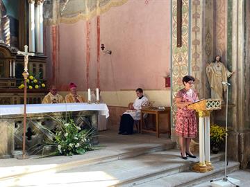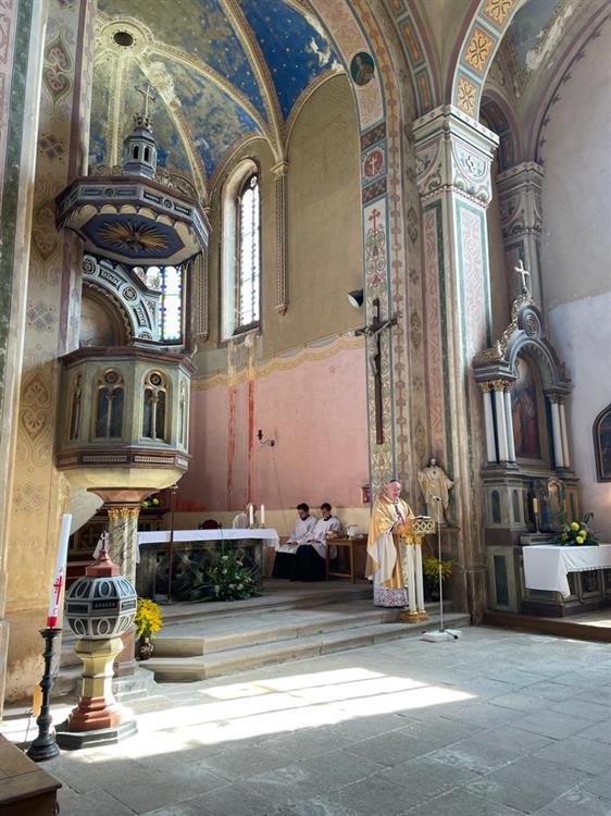 semináře. Na bohoslužbu přišli, kromě poutníků, také zastupitelé obce i
