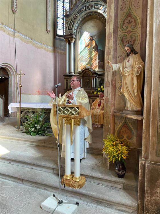 duchovní správce R.D. Tomasz Dziedzic. U oltáře vykonával jáhenskou službu Mgr.