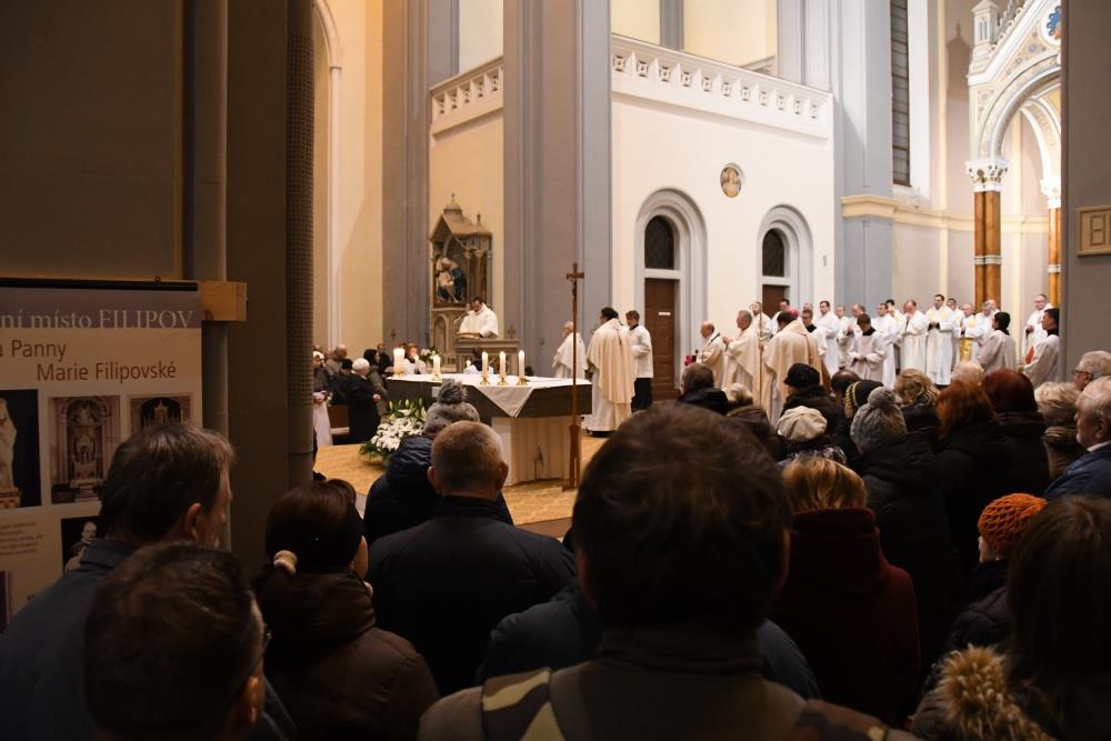 152. výročí poutního místa Filipov (1866–2018), slavnostní poutní mše za účasti litoměřického biskupa Mons. Jana Baxanta a českých, německých a polských kněží, výroční den zjevení Panny Marie a uzdravení těžce nemocné Magdaleny Kade, 13. ledna 2017, 4.00 hodina ranní, bazilika Panny Marie Pomocnice křesťanů, Filipov