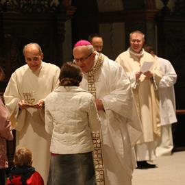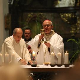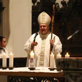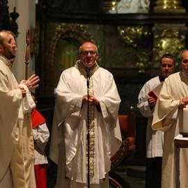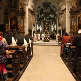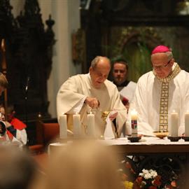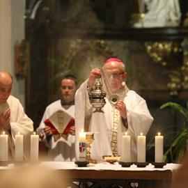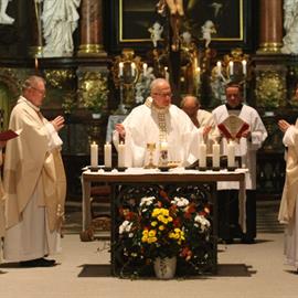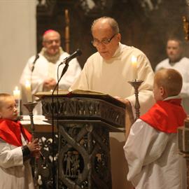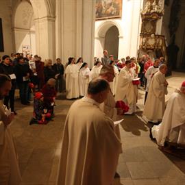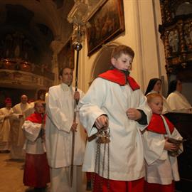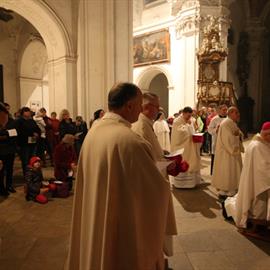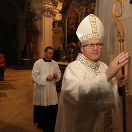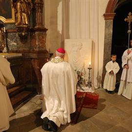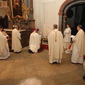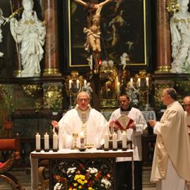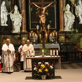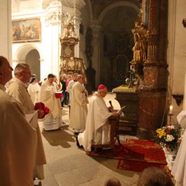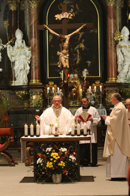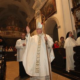 25. výročí svatořečení sv. Anežky České (12. listopadu 1989), mše svatá s litaniemi ke cti sv. Anežky za národ, obnovu církve v naší zemi, rodiny i za další potřeby poutníků, hlavní celebrant litoměřický biskup Mons. Jan Baxant, 13. listopadu 2014, klášterní kostel Narození Panny Marie, Doksany