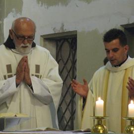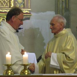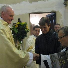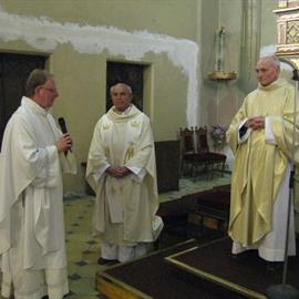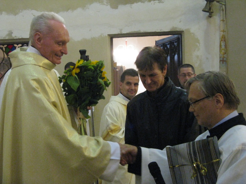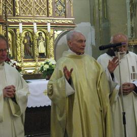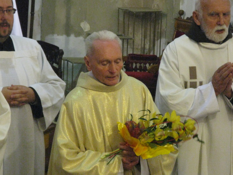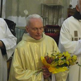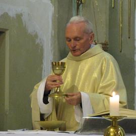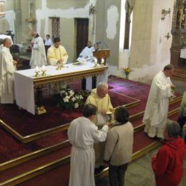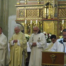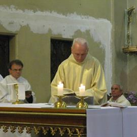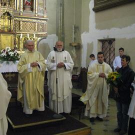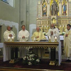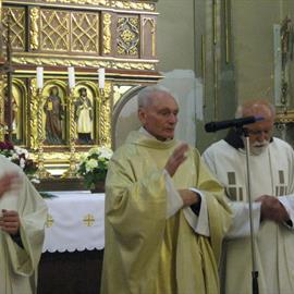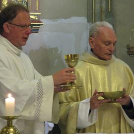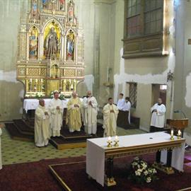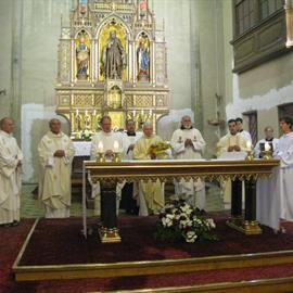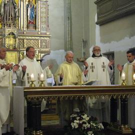 děkovná mše sv. za 50 let kněžské služby, emeritní arciděkan liberecký a emeritní kanovník P. František Opletal, koncelebrující kněží: liberecký arciděkan P. Radek Jurnečka, P. Antonín Kejdana OFM, farní vikář v Liberci P. Josef Faltejsek, bývalý farní vikář v Liberci P. Vít Audy a vojenský kaplan v Liberci P. Petr Šabaka, 25. června 2013, kostel sv. Antonína Velikého, Liberec