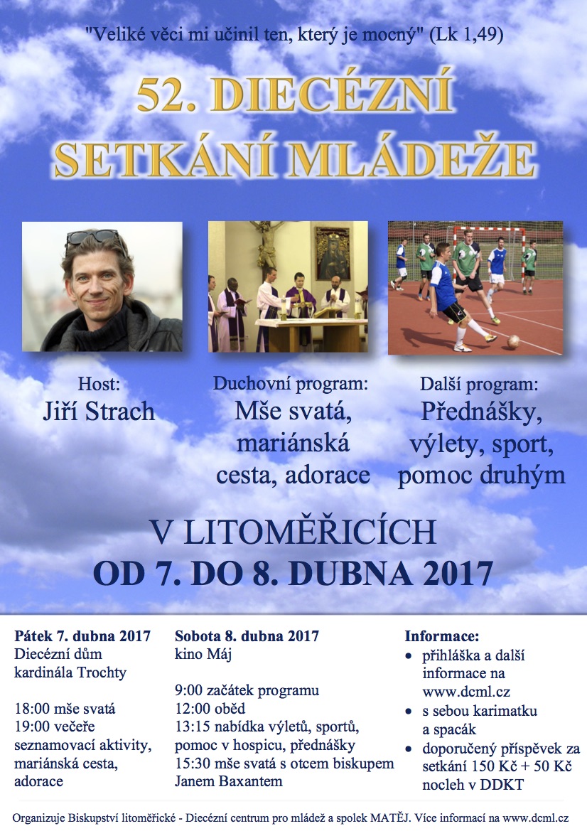 Zveme křesťanskou mládež na 52. diecézní setkání, které bude probíhat ve dnech 7. a 8. dubna 2017 v Litoměřicích.