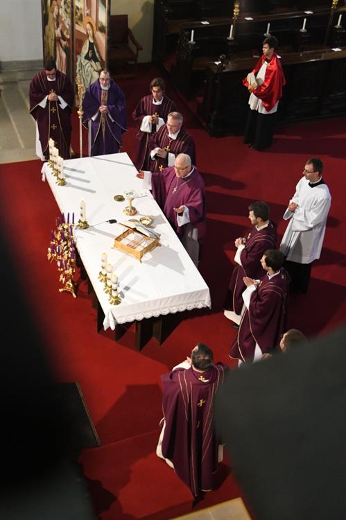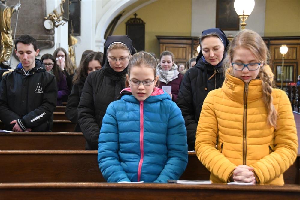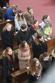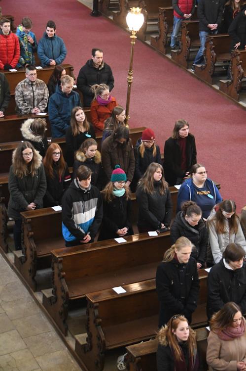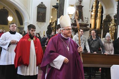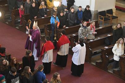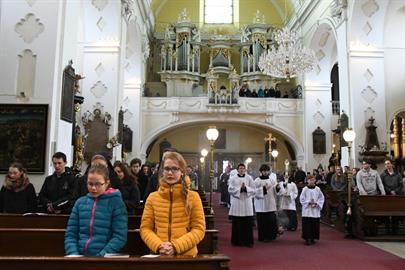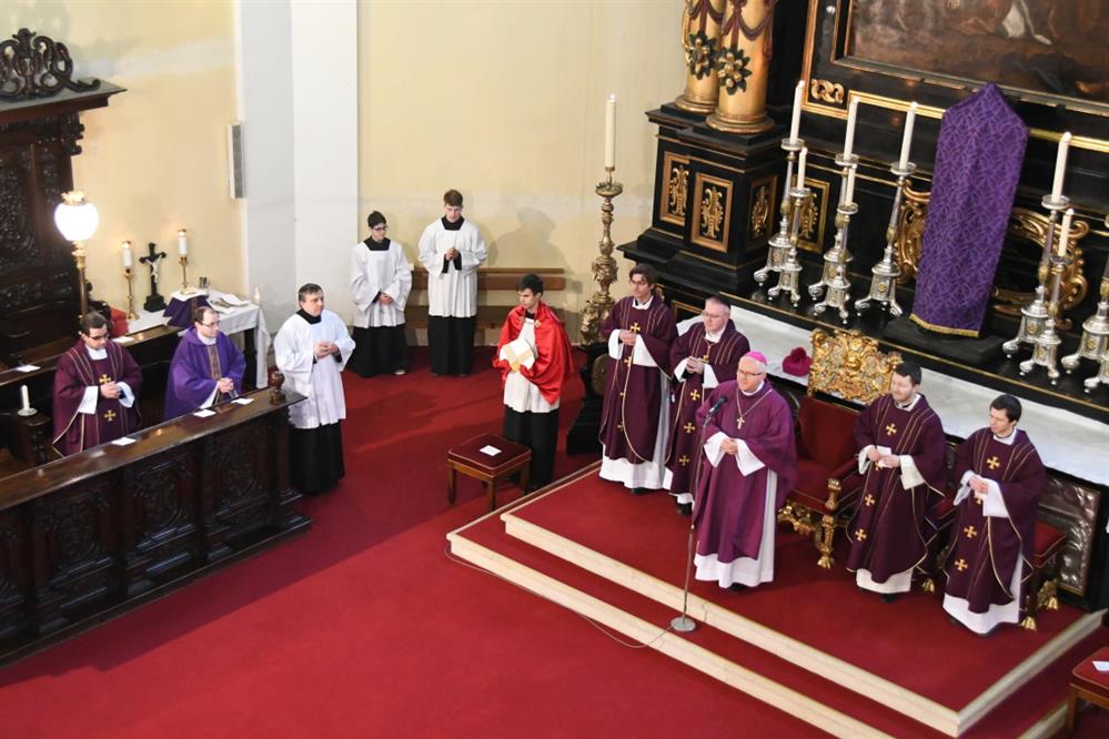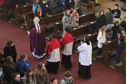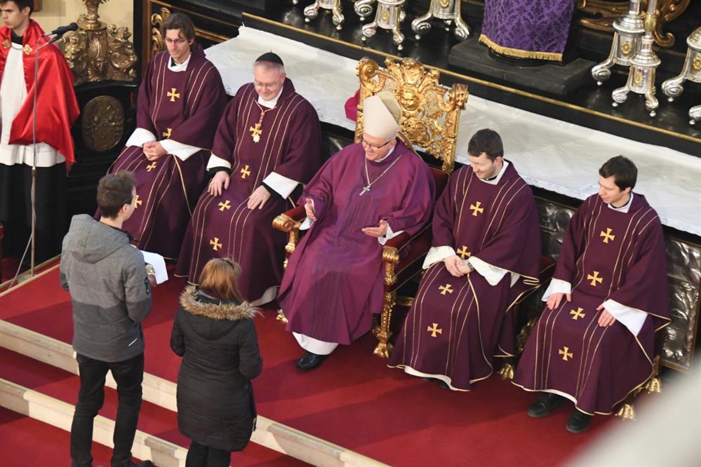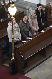 53. diecézní setkání mládeže, mše svatá s biskupem Janem Baxantem, generálním vikářem Mons. Martinem Davídkem, vedoucím diecézního centra pro mládež P. Jozefem Kadlicem, vikariátními kaplany pro mládež a dalšími kněžími; 24. března 2018, katedrála sv. Štěpána, Litoměřice