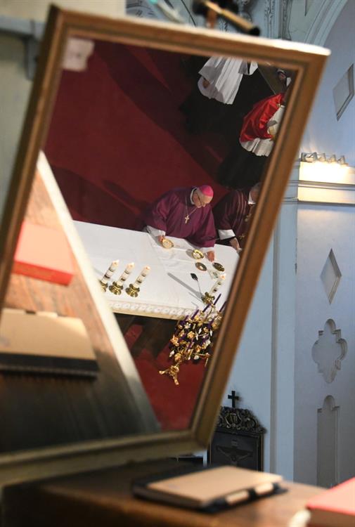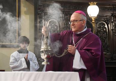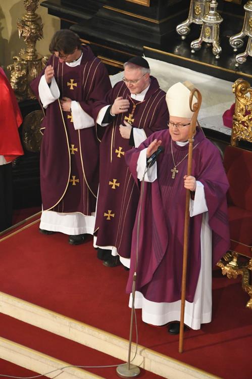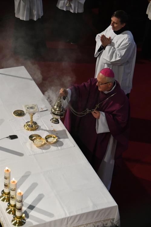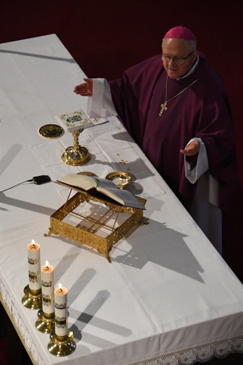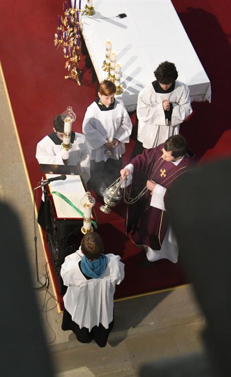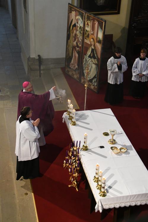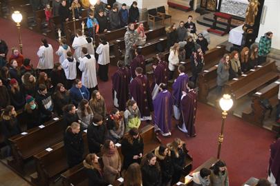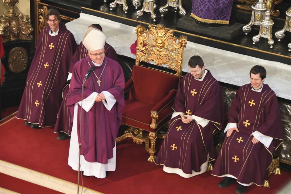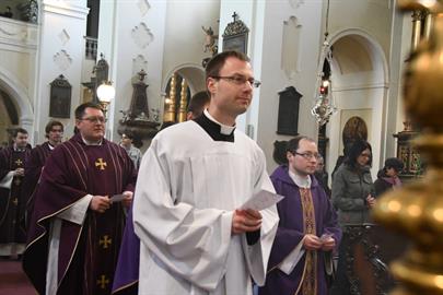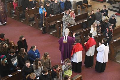 53. diecézní setkání mládeže, mše svatá s biskupem Janem Baxantem, generálním vikářem Mons. Martinem Davídkem, vedoucím diecézního centra pro mládež P. Jozefem Kadlicem, vikariátními kaplany pro mládež a dalšími kněžími; 24. března 2018, katedrála sv. Štěpána, Litoměřice