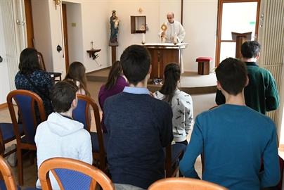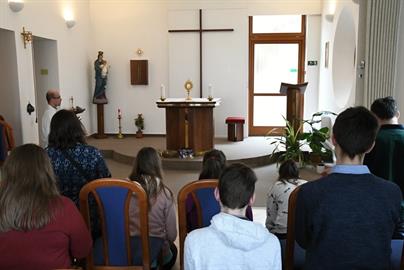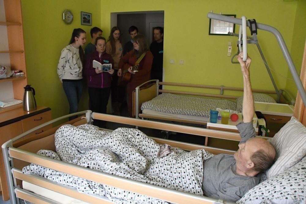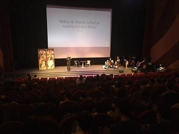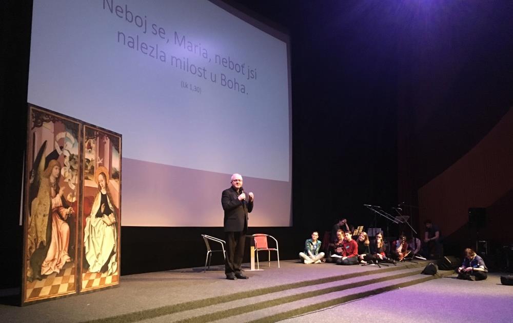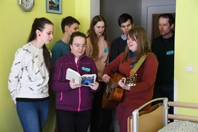 53. diecézní setkání mládeže (dopolední program v městském kině Máj, setkání s diecézním biskupem Janem Baxantem; jedna ze skupinek mladých na návštěvě Hospice sv. Štěpána v Litoměřicích), 24. března 2018, Litoměřice