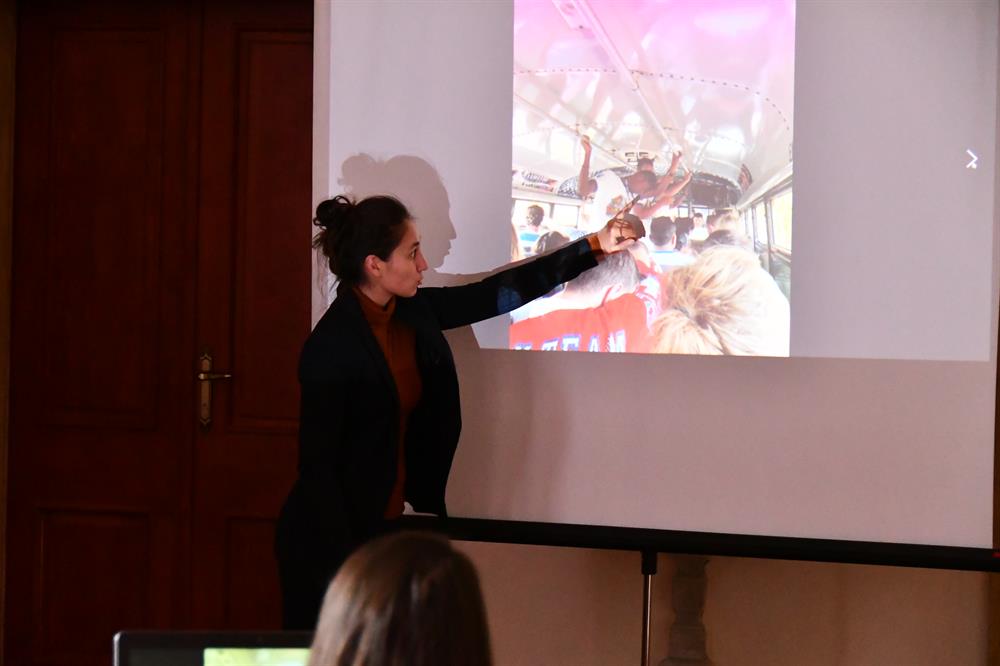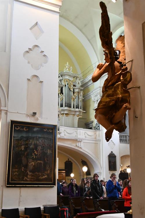 rozdělila do skupinek k odpolednímu programu ve městě, v biskupské rezidenci