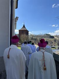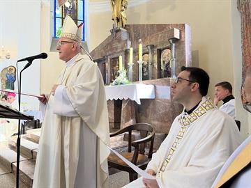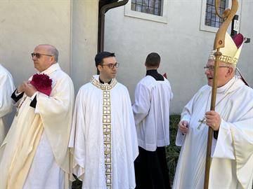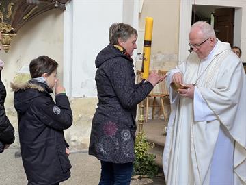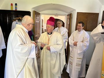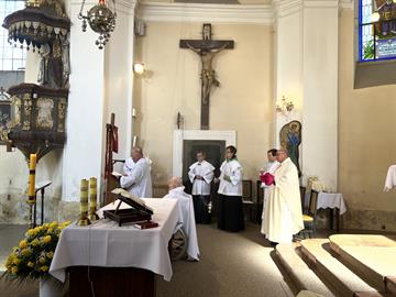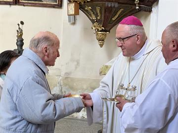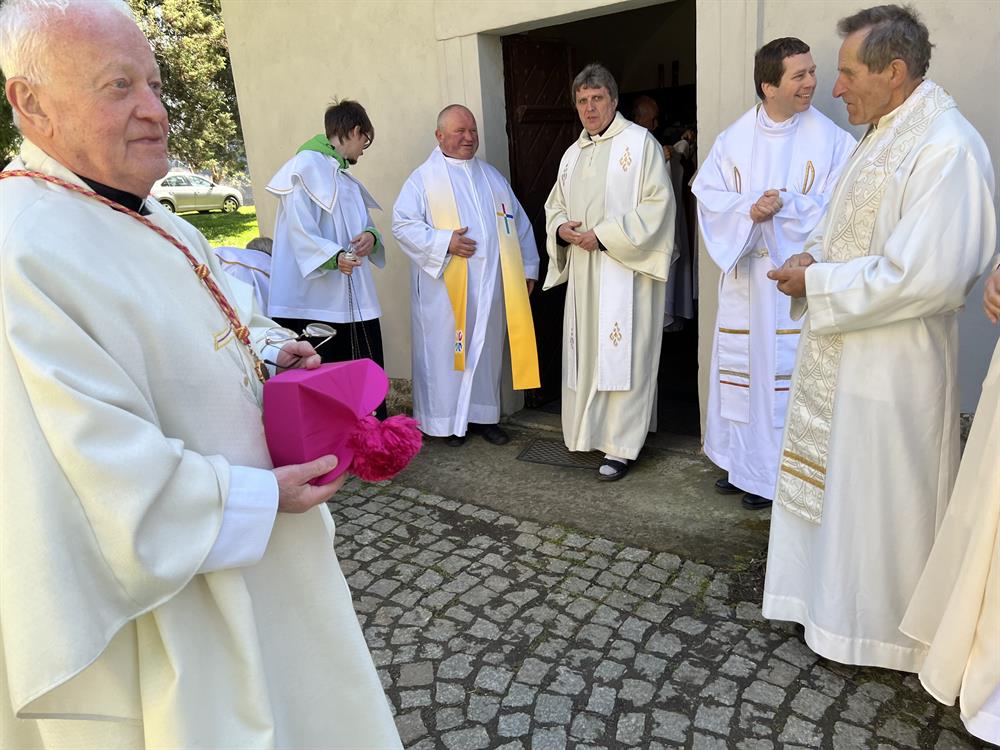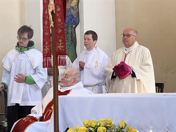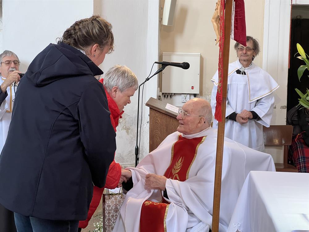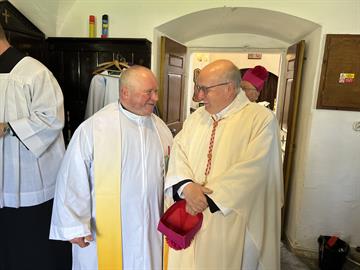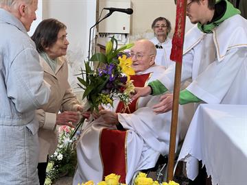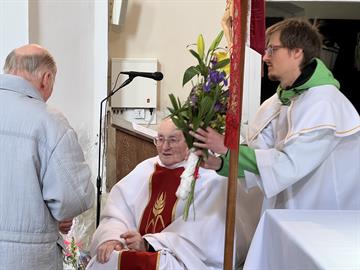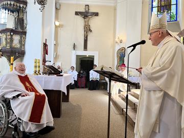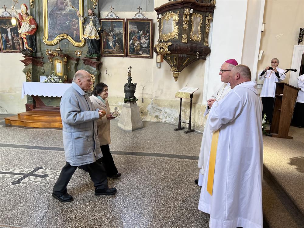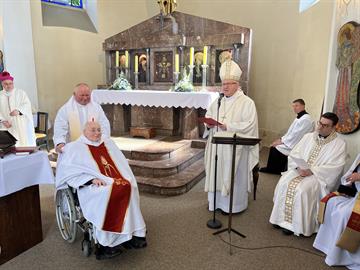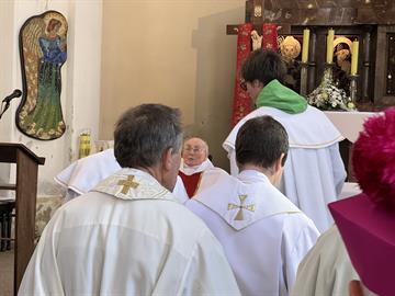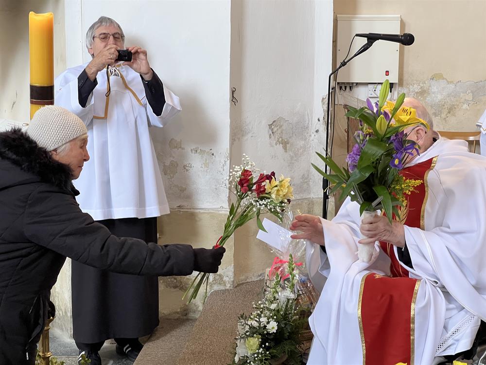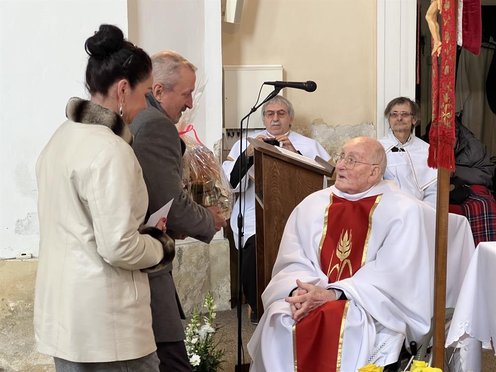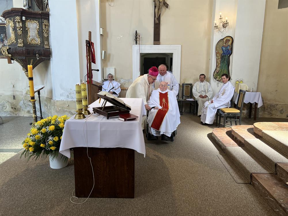 a popřáli ještě mnoho Božích milostí a sil. Mše se zúčastnil také zástupce