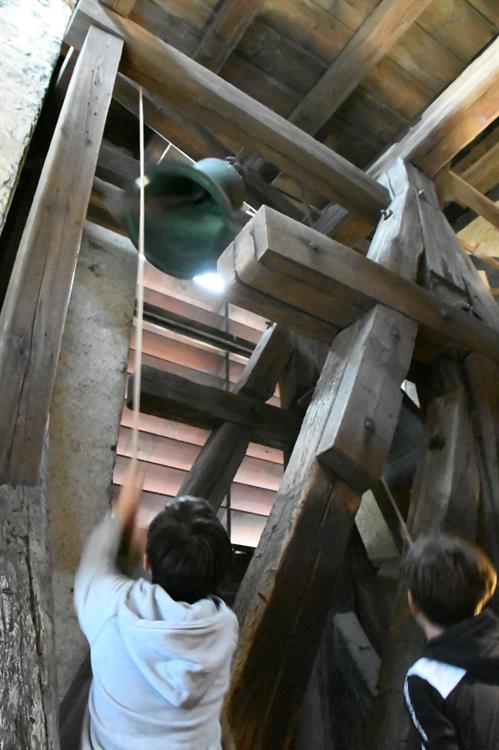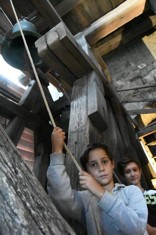 s dětmi rozhýbal a rozezněl všechny tři zvony ve věži.