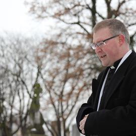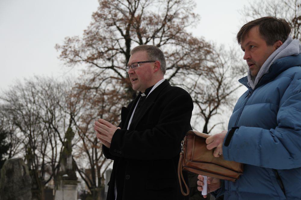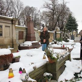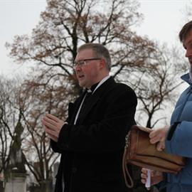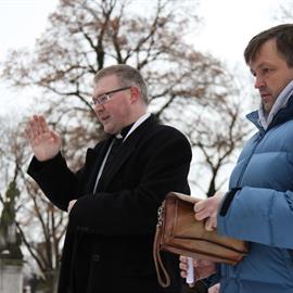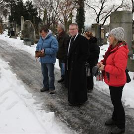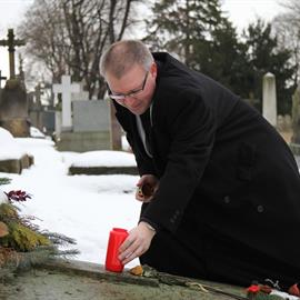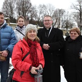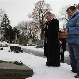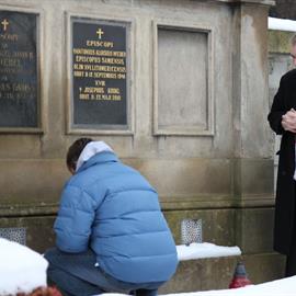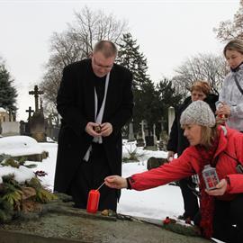 Betlémské světlo na místě posledního odpočinku litoměřického biskupa Mons. Josefa Koukla, 24. prosinec 2010, biskupská hrobka, Městský hřbitov Litoměřice