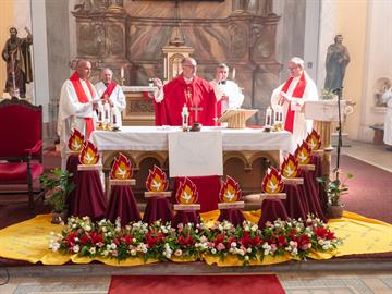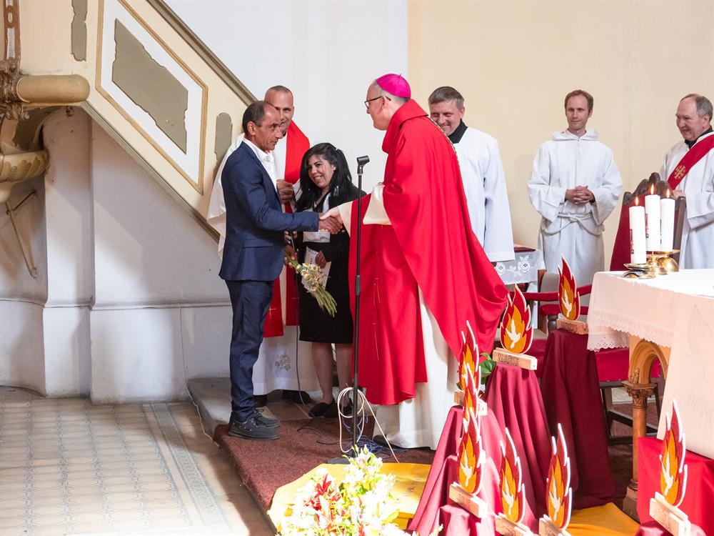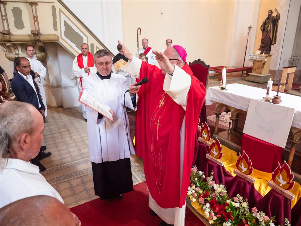 V sobotu 8. června v kostele sv. Petra a Pavla v Jeníkově u Duchcova byla udělena litoměřickým biskupem Mons. Stanislavem Přibylem svátost biřmování 9 biřmovancům. Po slavnostní mši svaté byli všichni přítomni pozváni na společný oběd. Bohu díky!