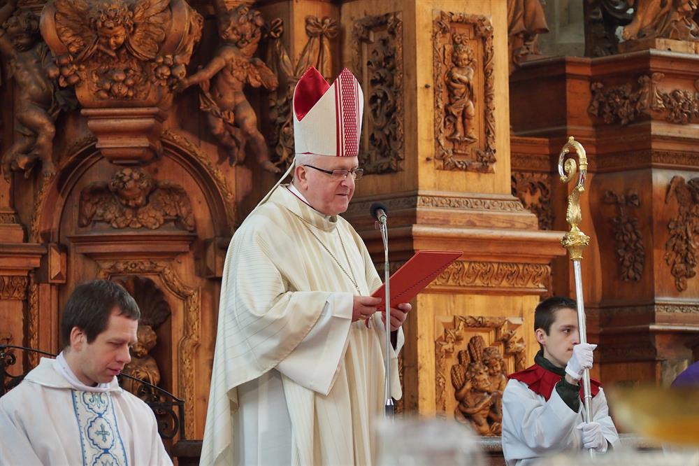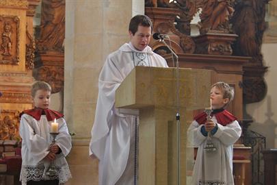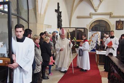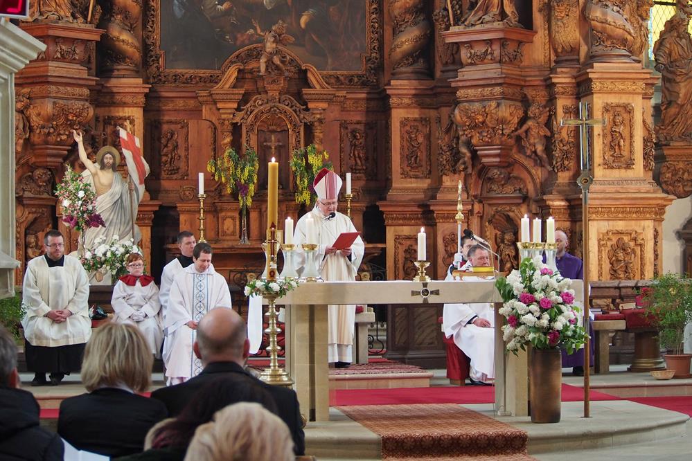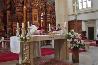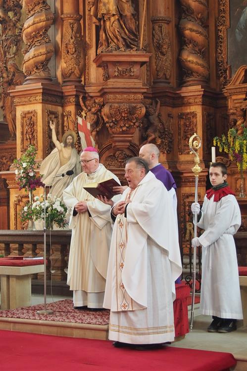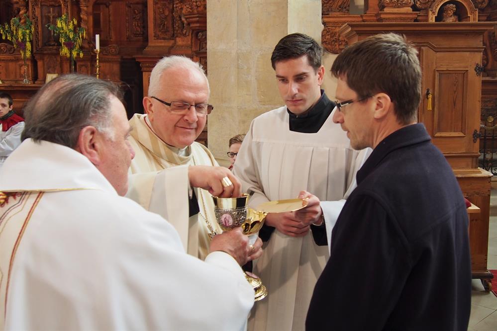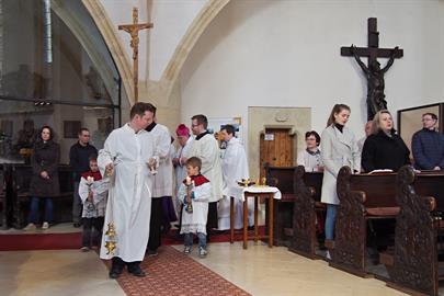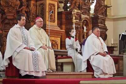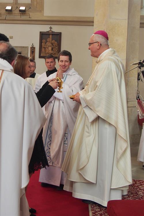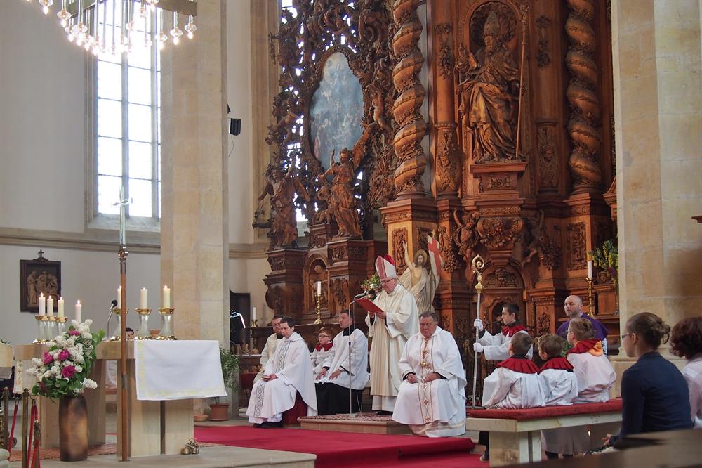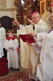 kostele sv. Mikuláše v Lounech litoměřický biskup Mons. Jan Baxant svátost