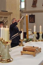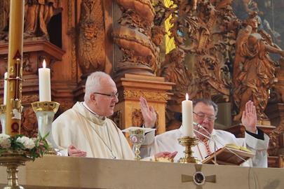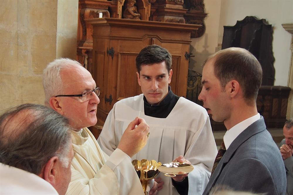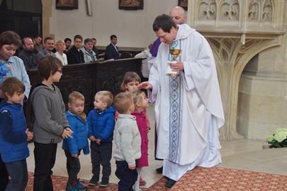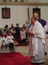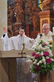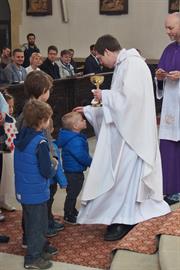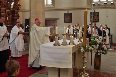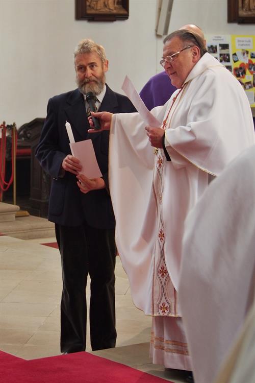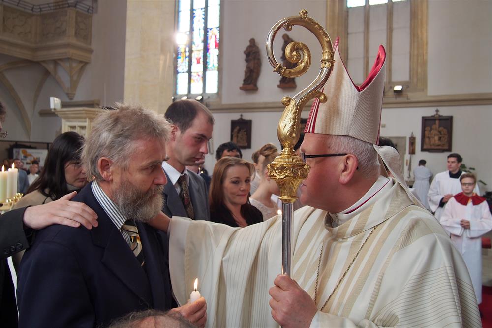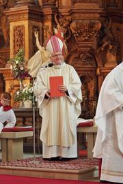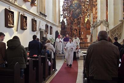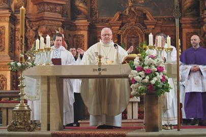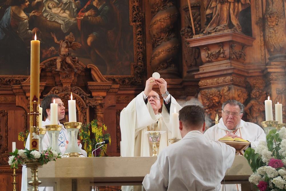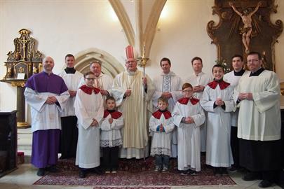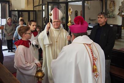 kostele sv. Mikuláše v Lounech litoměřický biskup Mons. Jan Baxant svátost