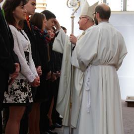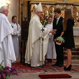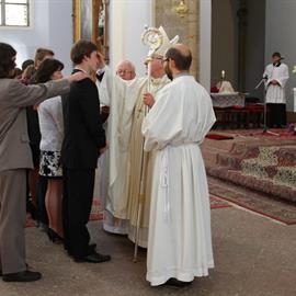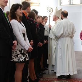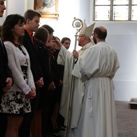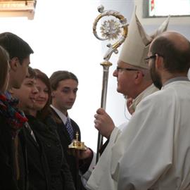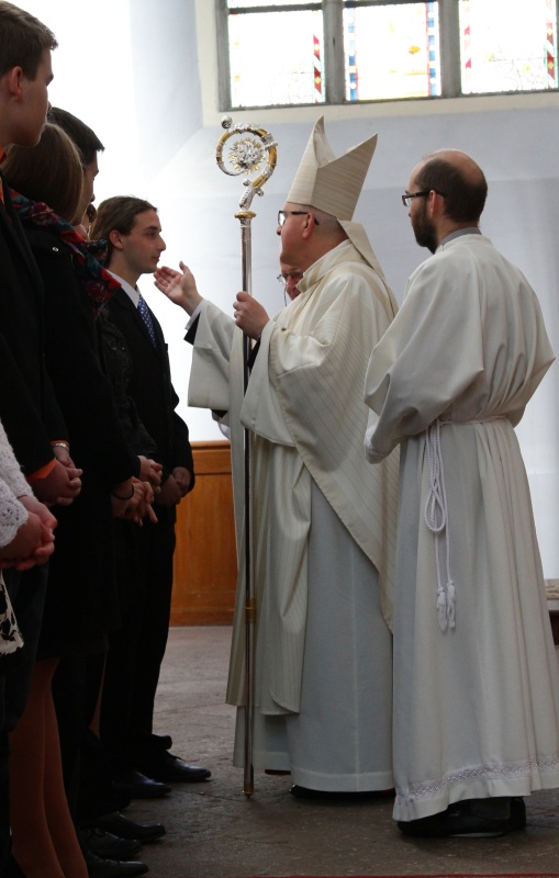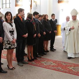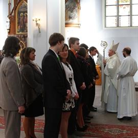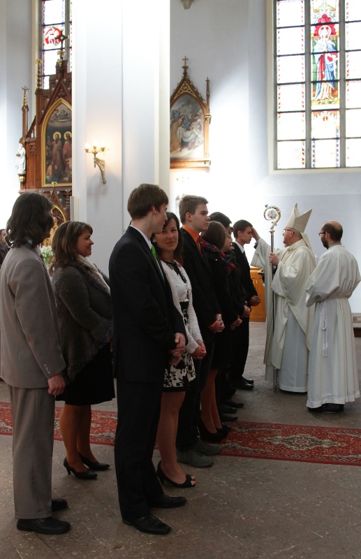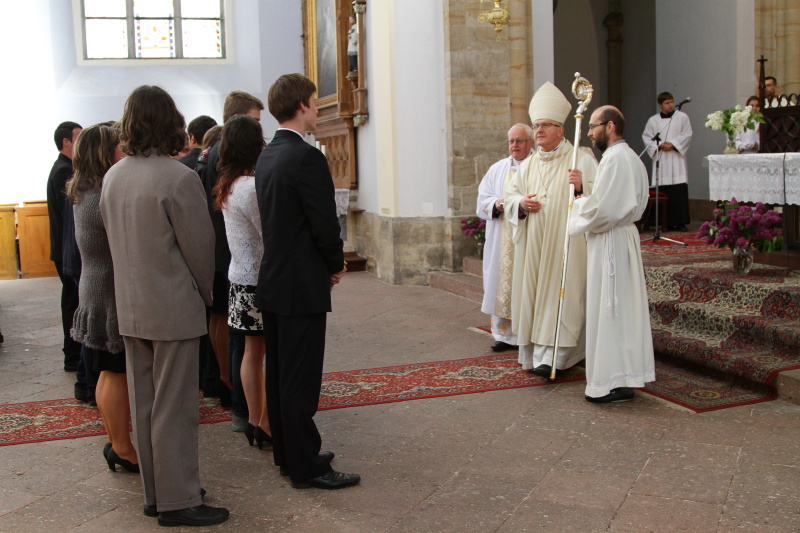 pastorační návštěva diecézního biskupa Mons. Jana Baxanta, mše svatá s udílením svátosti biřmování, 4. května 2014, kostel sv. Mikuláše, Turnov