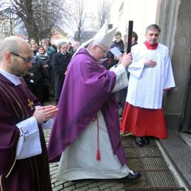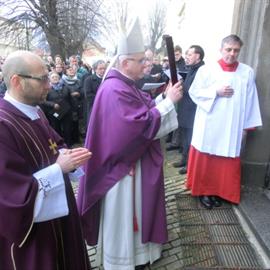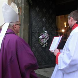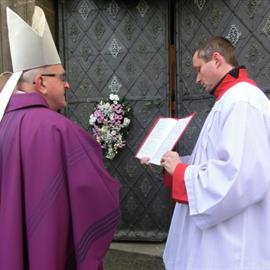 Biskup Jan Baxant otevřel první Svatou bránu v diecézi