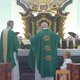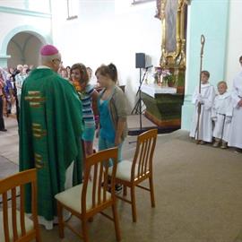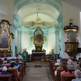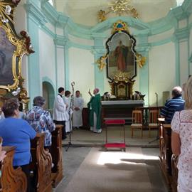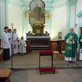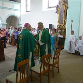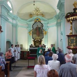 slavnost znovuotevření a požehnání opraveného interiéru kostela sv. Matouše v Pnětlukách (ŘKF Liběšice u Žatce, administrátorem farnosti je P. Vilém M. Štěpán O.Praem.) za účasti Mons. Jana Baxanta, biskupa litoměřického; 23. června 2013, Pnětluky