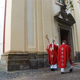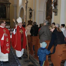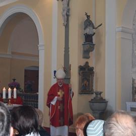 Biskup Jan Baxant požehnal opravený kostel v Dlažkovicích