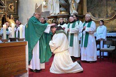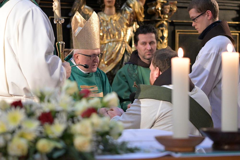Biskup Jan Baxant vysvětil na kněze bratra Bernarda Ondřeje Mléčku, OFM