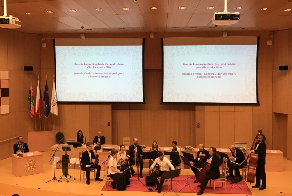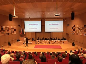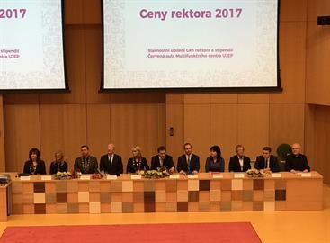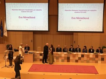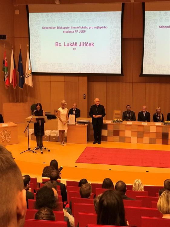 Slavnostní udílení Cen rektora Univerzity Jana Evangelisty Purkyně a stipendií (Mons. Jan Baxant, biskup litoměřický, předal dvěma studentům jednorázové stipendium ve výši 10.000 Kč), 14. prosince 2017, Červená aula Multifunkčního informačního a vzdělávacího centra UJEP, Ústí nad Labem
