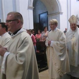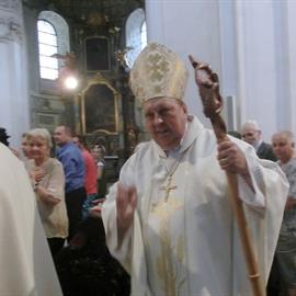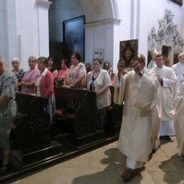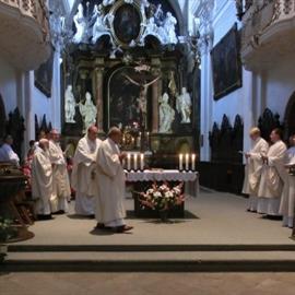 poutní mše svatá, eucharistický průvod, biskup Mons. Pavel Posád, 3. srpna 2012, první pátek v poutním kostele Narození Panny Marie, Doksany