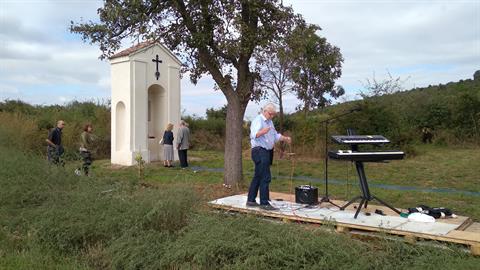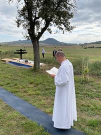 Radim Vondráček bohoslužbu slova za zemřelé letce, kteří zahynuli poblíž Rané.