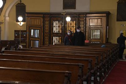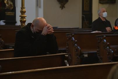 Bohu. Díky dodržování vládních epidemiologických předpisů bylo v katedrále