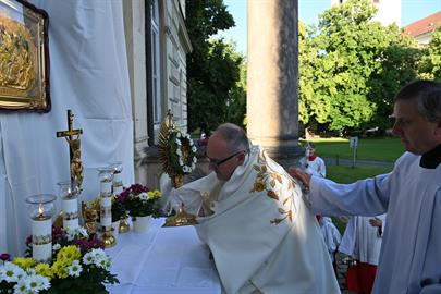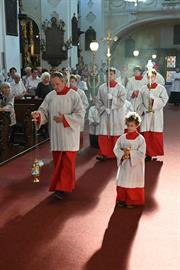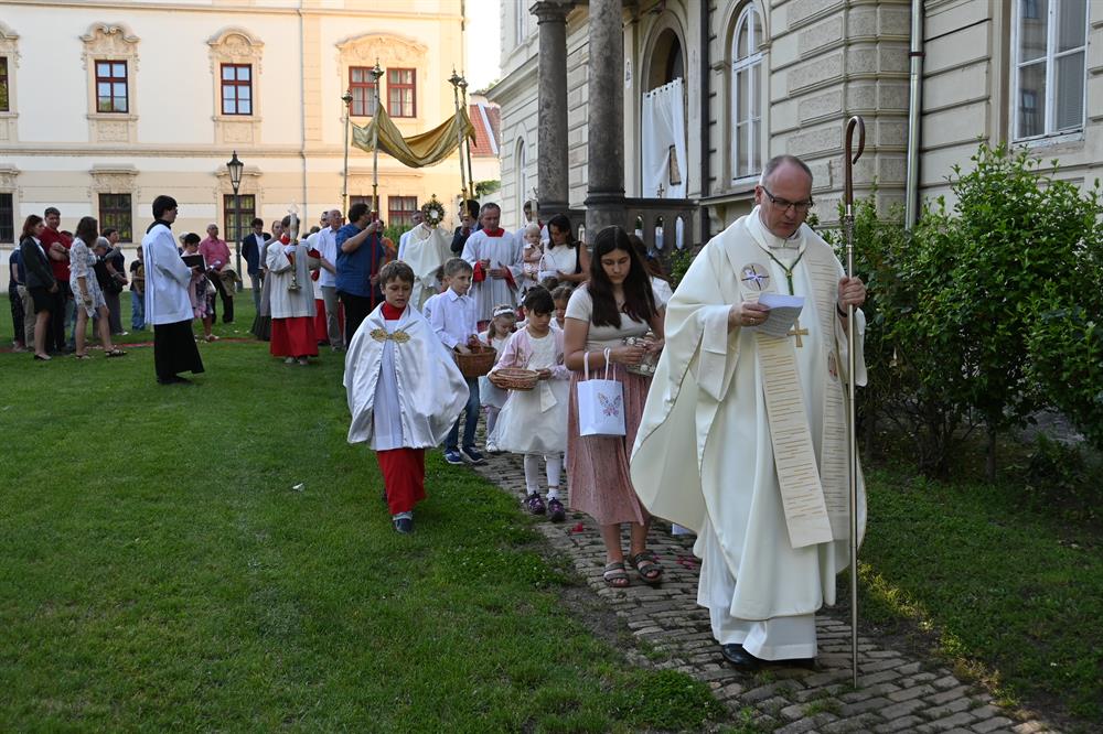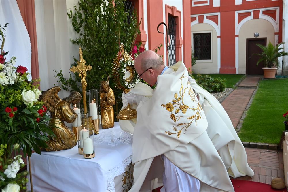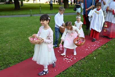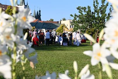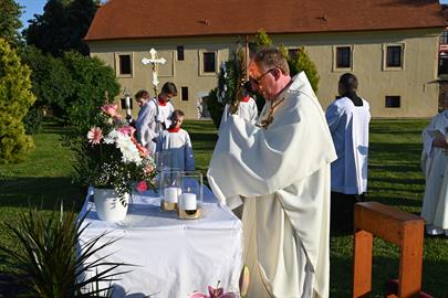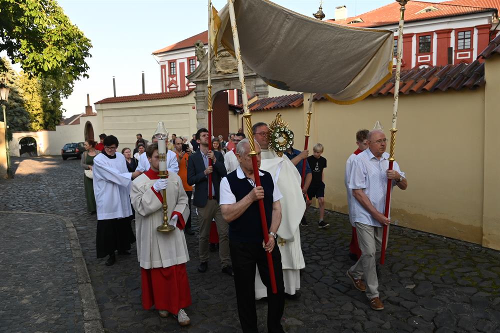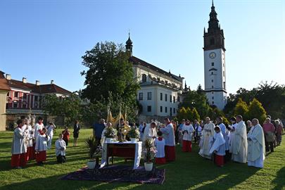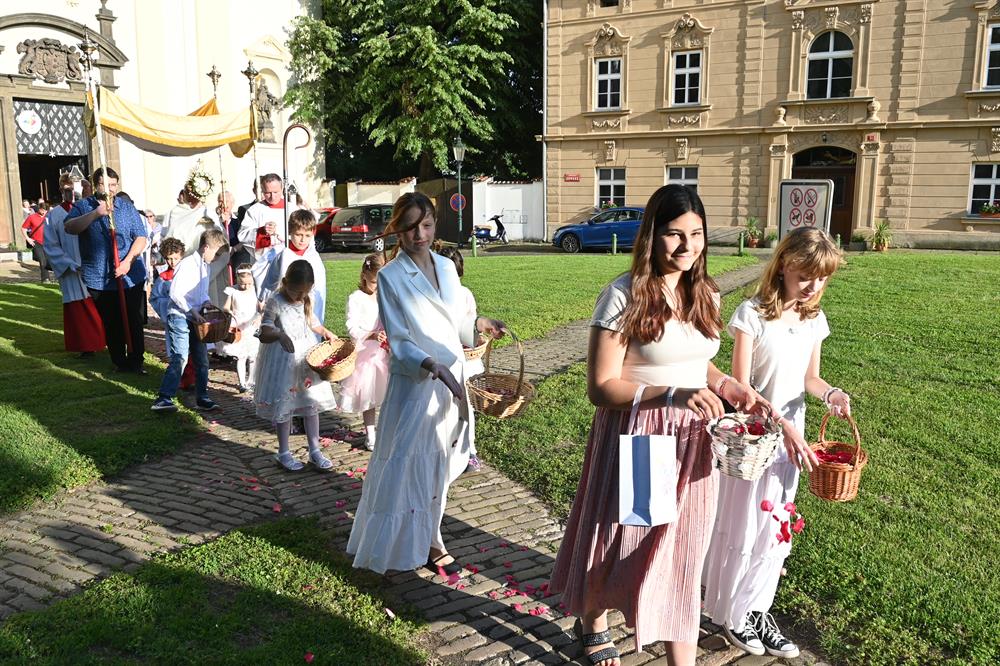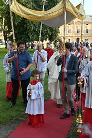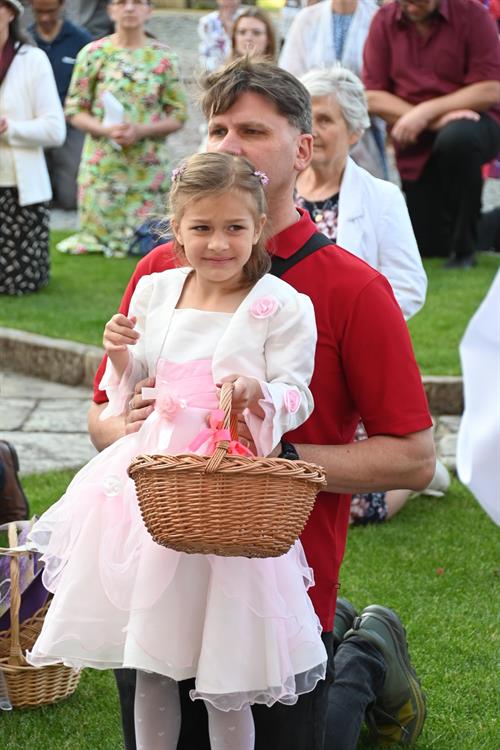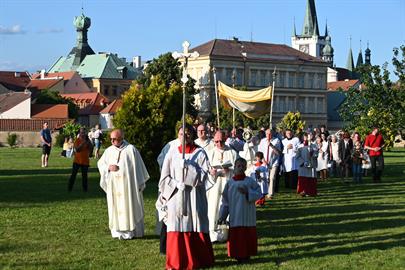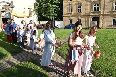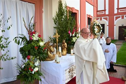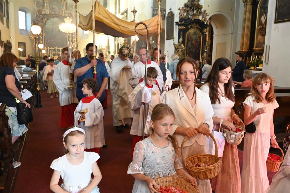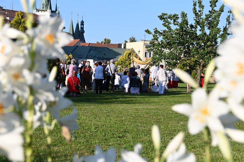 - Vše to krásné je dnes vnějším znamením, že Ježíš je s námi. Proto vycházíme s tolika květinami, ozdobami, kadidlem a baldachýnem a neseme jej v krásné zlatnické práci. Bývá to ale poznat na nás? Jsme ozdobou toho, kterého neseme v srdci? V tom kousku chleba je ten, kterého máme přijímat, být s ním nablízku a nést jej druhým lidem.