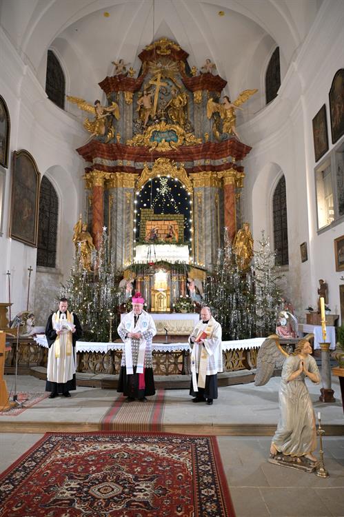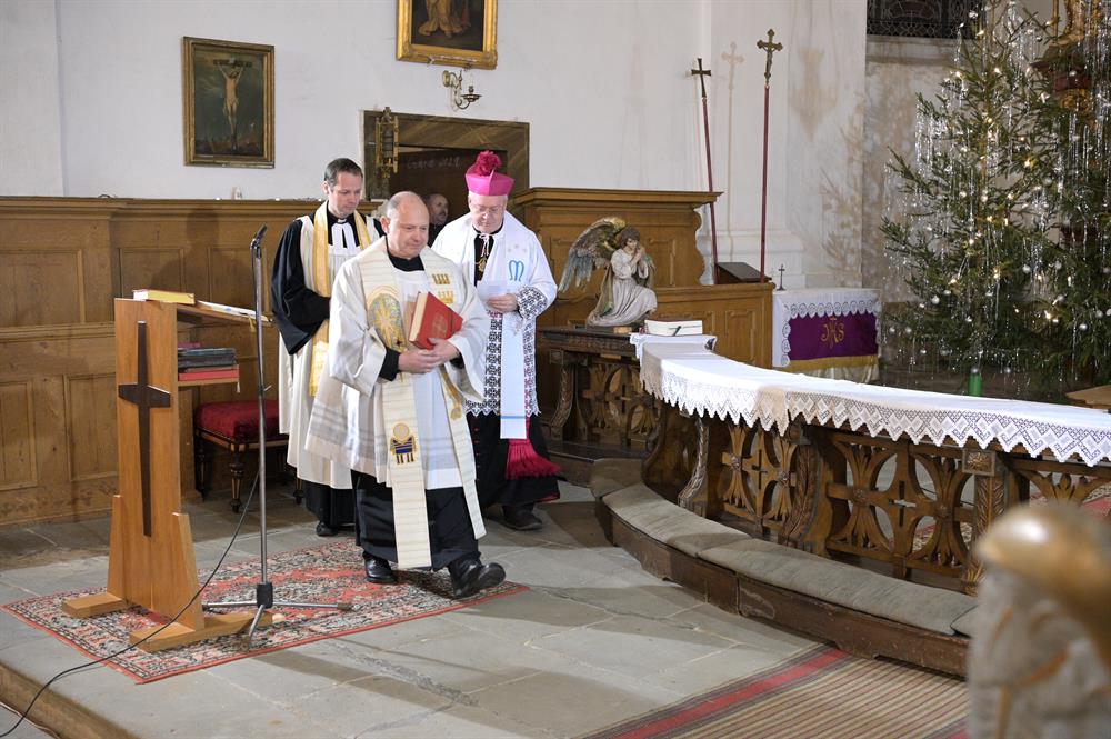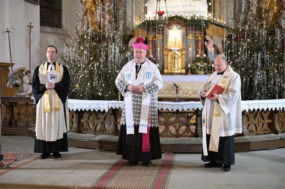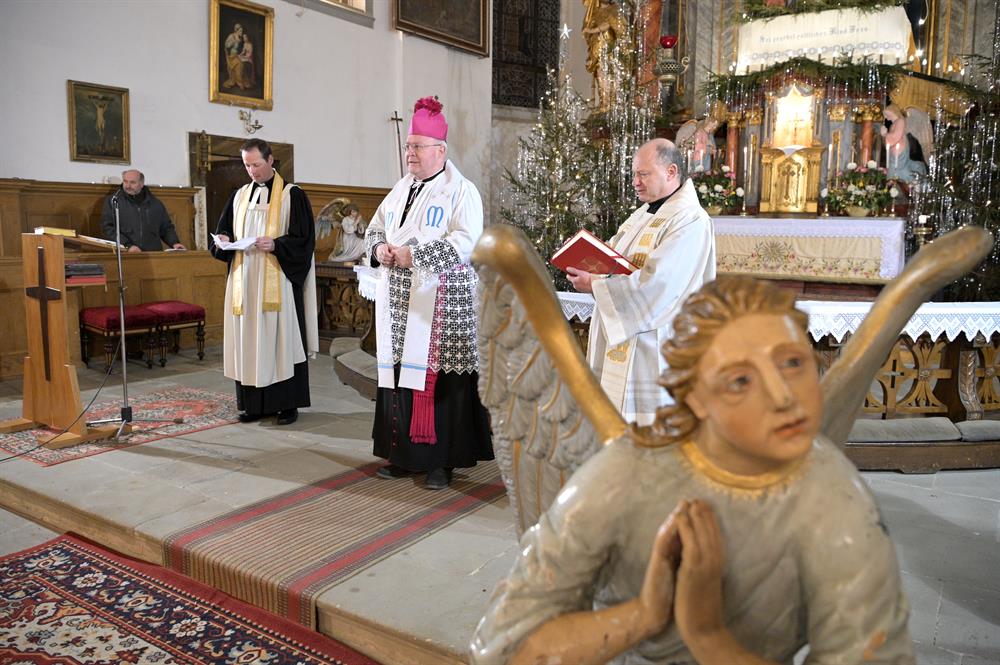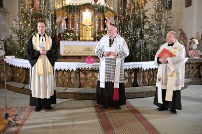 Ve středu 18. ledna 2023 od 18 hodin se v kostele sv. Mikuláše v Mikulášovicích konala ekumenická bohoslužba s mezinárodní účastí pod názvem Koledování u Betléma. Mikulášovice leží u hranic s Německem a bohoslužba se konala ve dvou jazycích, tedy v češtině a v němčině. Ze saského Gaußigu přijel luteránský farář Thomas Schädlich, který měl promluvu, a římskokatolický farář ze Schirgiswalde v Horní Lužici R.D. Martin Prause, jehož farnost je známá výstavami Betlémů. Českou stranu zastoupil generální vikář Mons. Martin Davídek, který vedl bohoslužbu a měl promluvu v češtině. Ekumenickou bohoslužbu, která byla zakončena společnými zpěvy u Betléma, připravil a v obou jazycích moderoval mikulášovický farník pan Roman Klinger. Po bohoslužbě se sešli místní lidé s poutníky z Německa na závěrečném apagé a v jejich srdcích doznívala slova písně “Stille Nacht”… “jen Boží láska, ta bdí”.