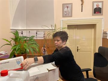 Mgr. Antonín Randa na diecézní kurii v Litoměřicích pro kněze další várku léků