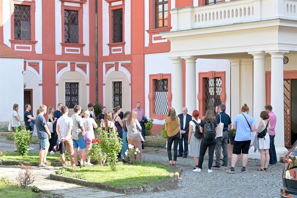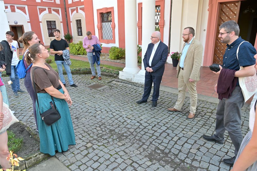 Ve středu 7. září 2022 v odpoledních hodinách navštívili studenti církevních dějin se svými přednášejícími rezidenci litoměřické biskupa, kde je přivítal sám pan biskup a ukázal jim prostory, kde se církevní dějiny také často utvářely a i v současnosti vlastně utváří. Prohlídku Mons. Jan Baxant zakončil ve své pracovně, kde mnoho jeho předchůdců muselo řešit náročné otázky jimž se nedalo vyhnout, a které byly tak důležité pro další vývoj církve nejen v litoměřické diecézi, ale i pro vývoj české či světové církve. Letní škola církevních dějin II. bude pokračovat až do pátku 9. září 2022 přednáškami v Diecézním domě kardinála Trochty.