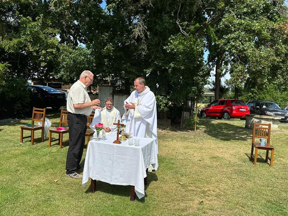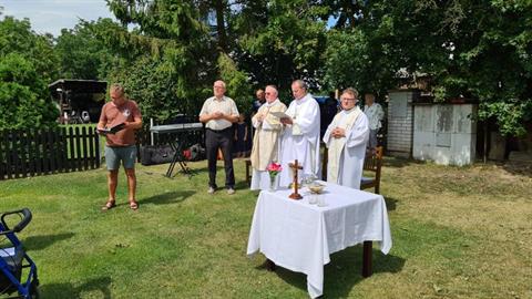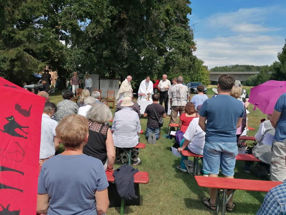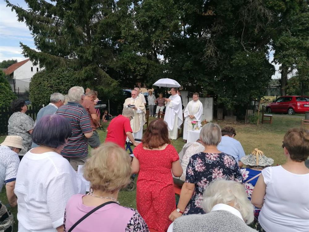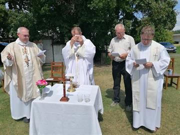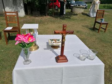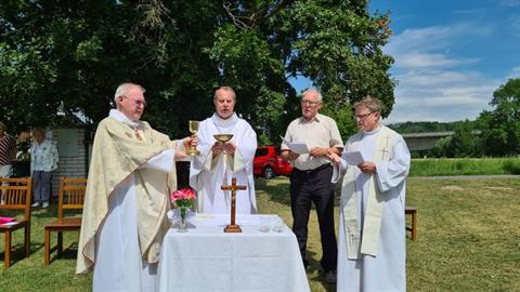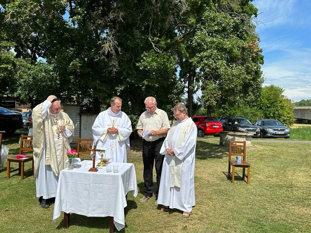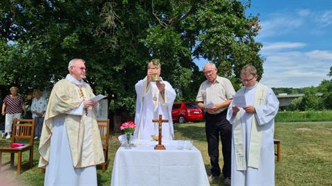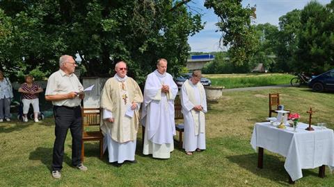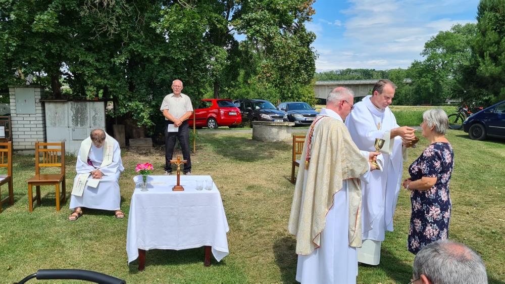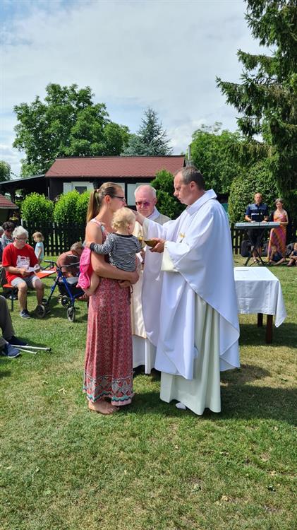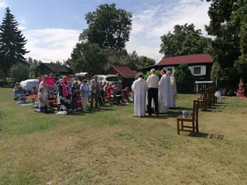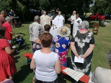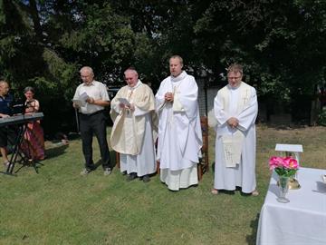 pod širým nebem. Hlavním celebrantem byl místní duchovní správce P. Wolfgang