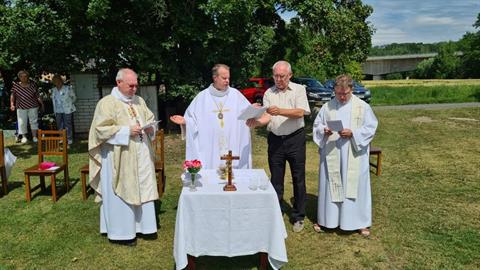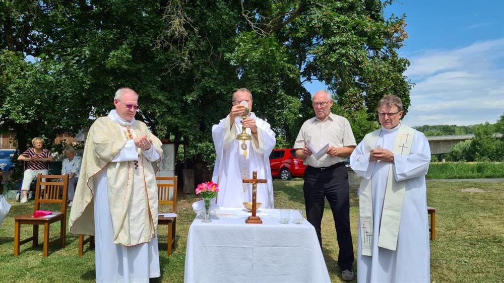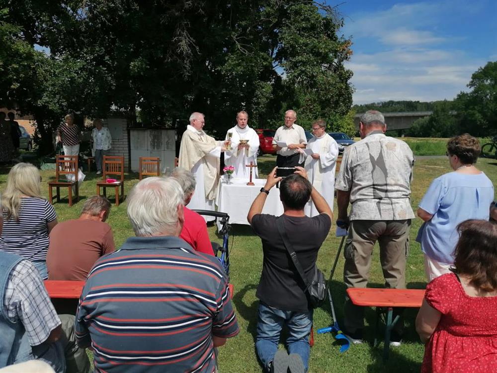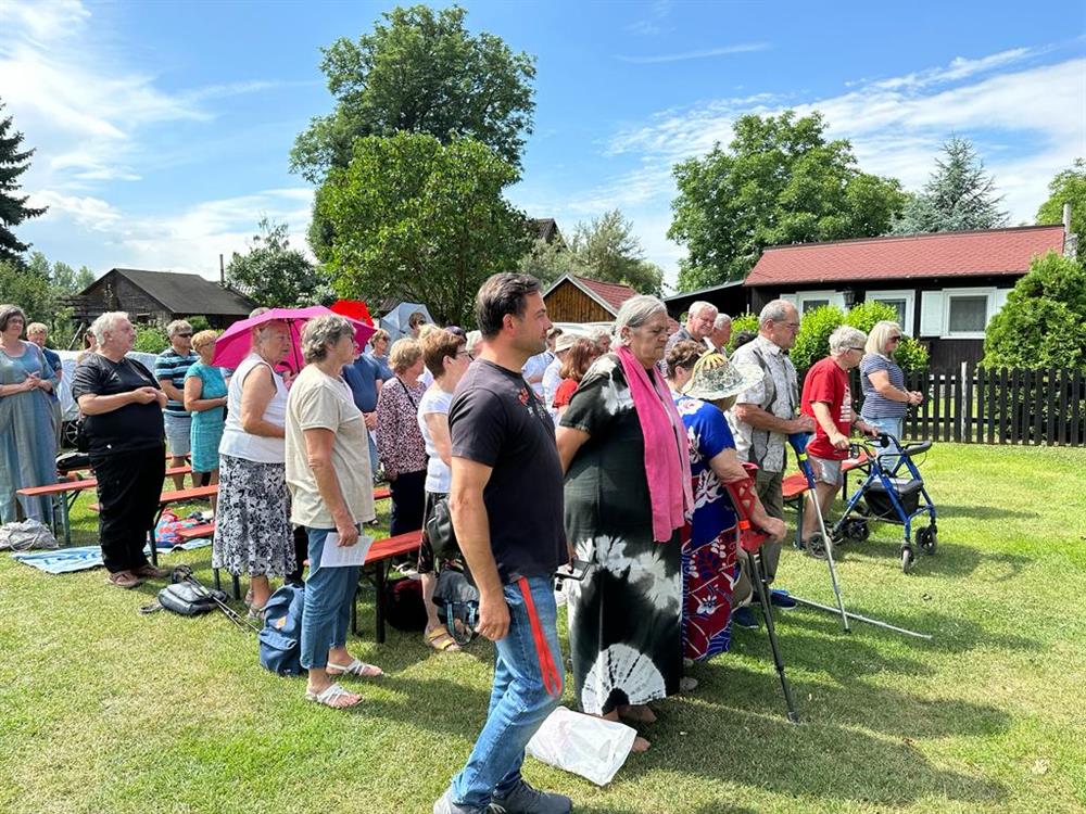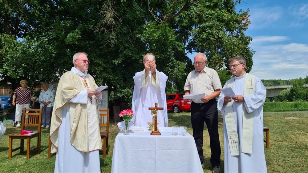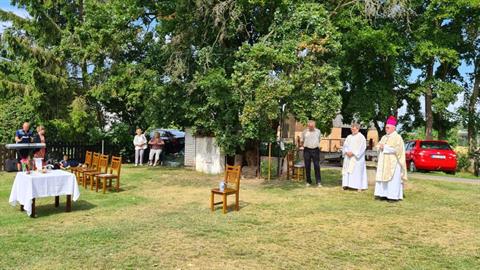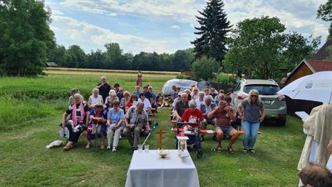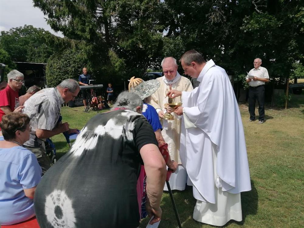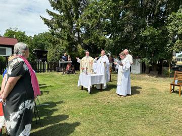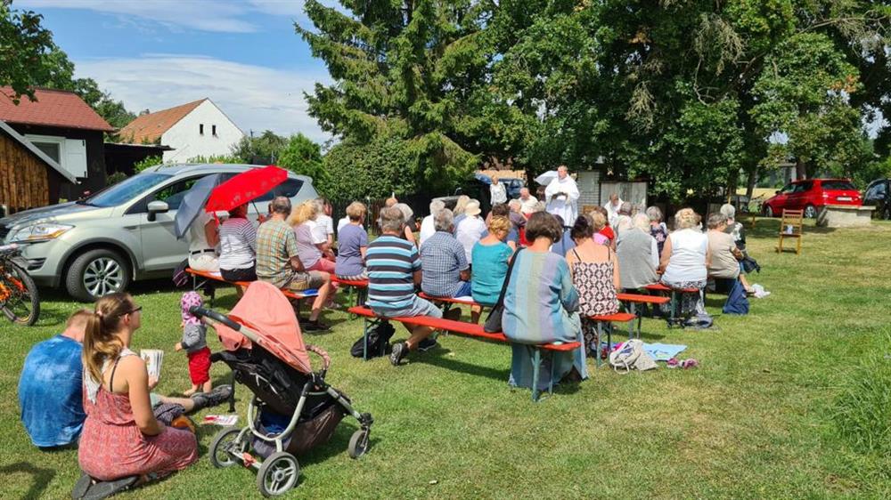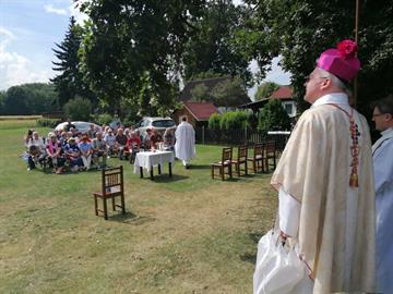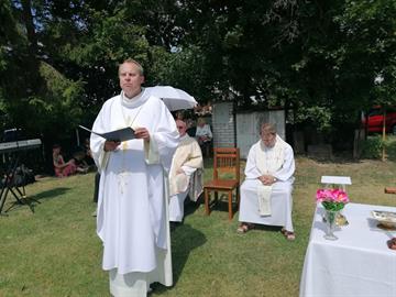 pod širým nebem. Hlavním celebrantem byl místní duchovní správce P. Wolfgang