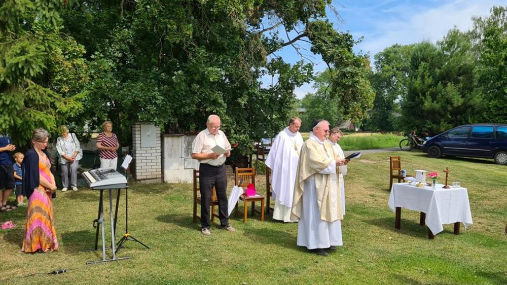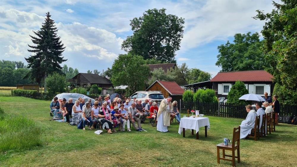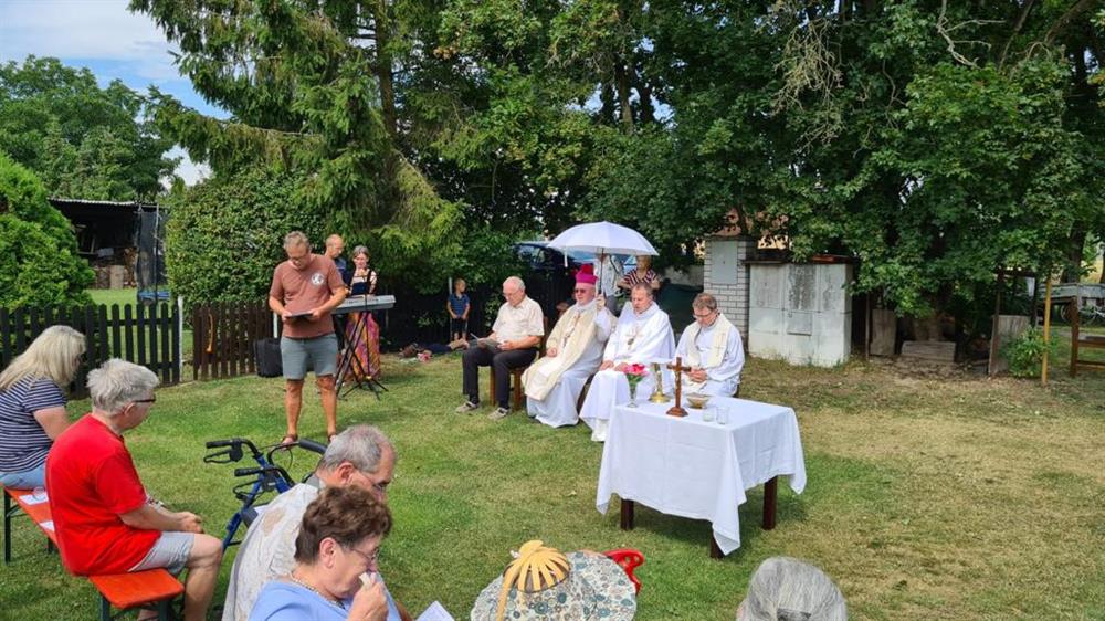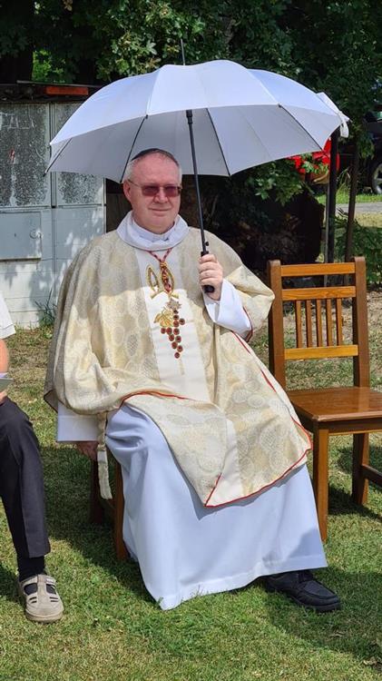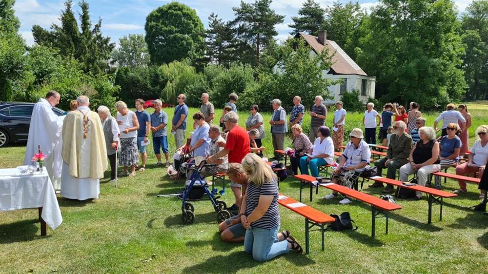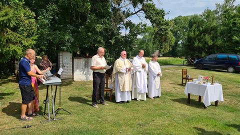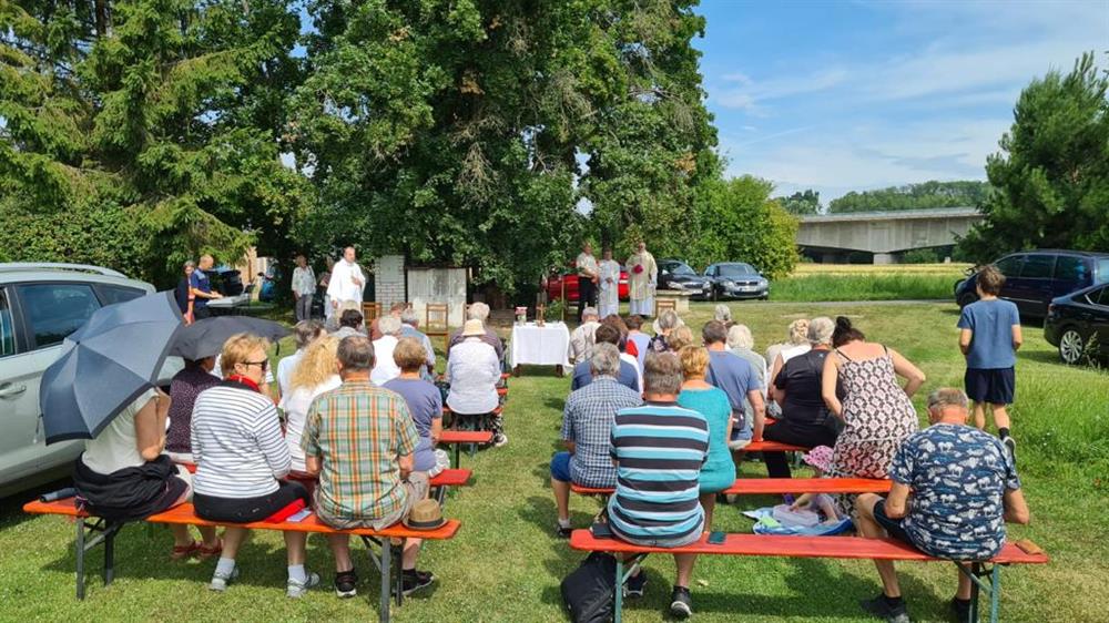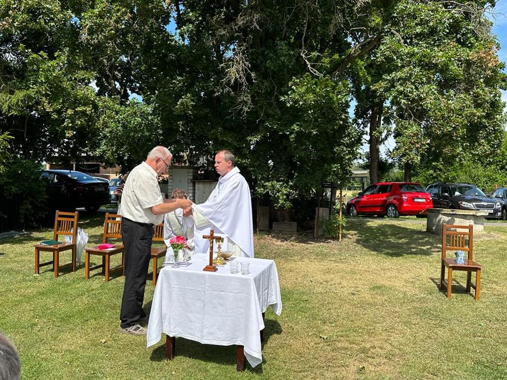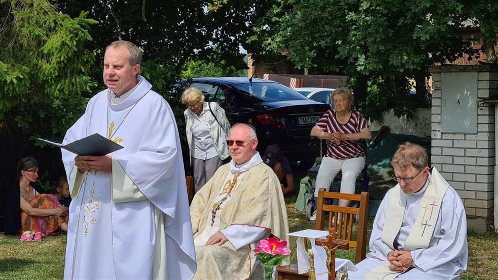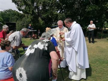 pod širým nebem. Hlavním celebrantem byl místní duchovní správce P. Wolfgang