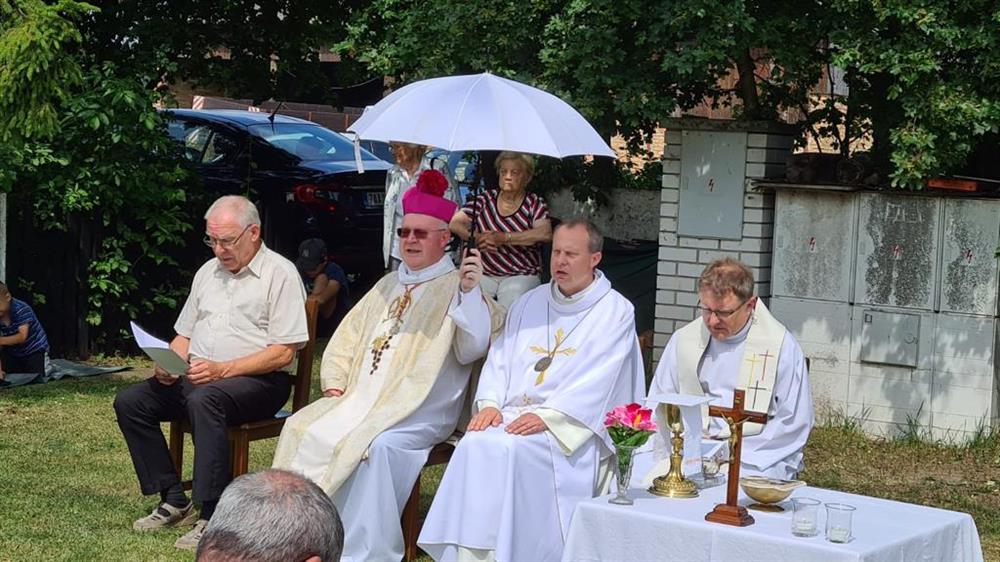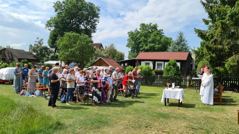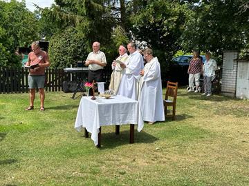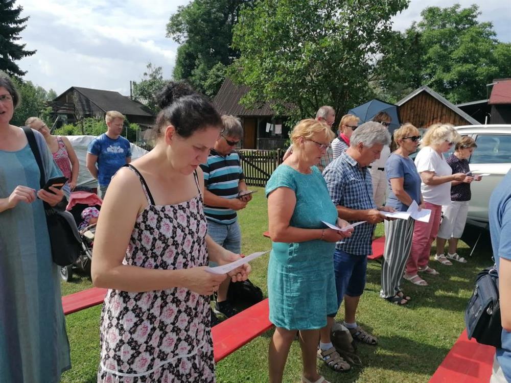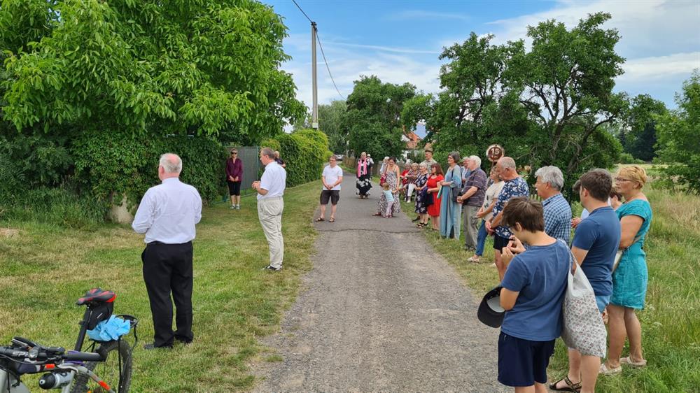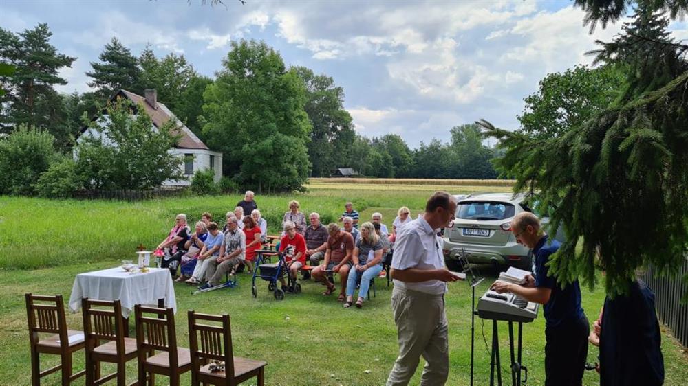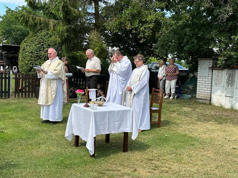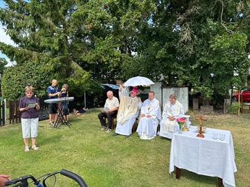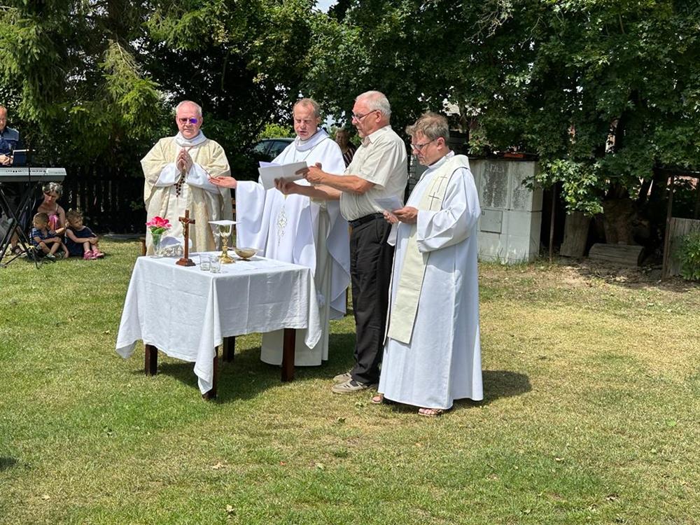 pod širým nebem. Hlavním celebrantem byl místní duchovní správce P. Wolfgang