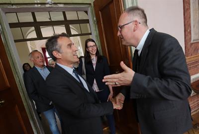 Delegace partnerského města Armentières a francouzský velvyslanec na návštěvě u litoměřického biskupa