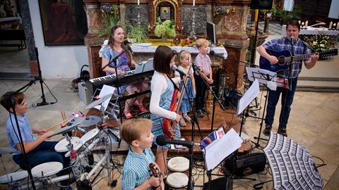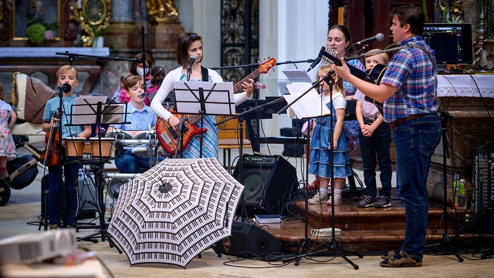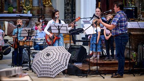 zpěvem rodinná kapela "Šimon family band". Po mši sv. byla pro
