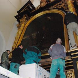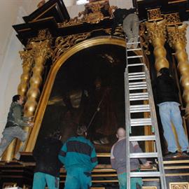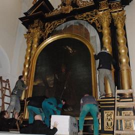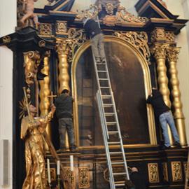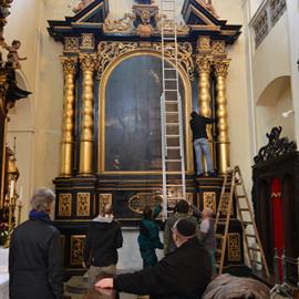 instalace zrestaurovaného obrazu Svatý Vojtěch (ze souboru pěti oltářních pláten vytvořených českým barokním malířem Karlem Škrétou pro katedrálu sv. Štěpána), restaurátor MgA. Adam Pokorný, Ph.D., 12. prosince 2013, katedrála sv. Štěpána, Litoměřice
