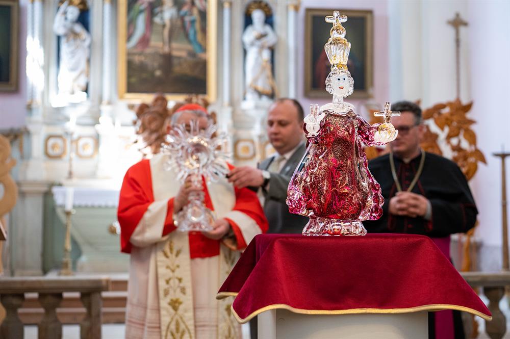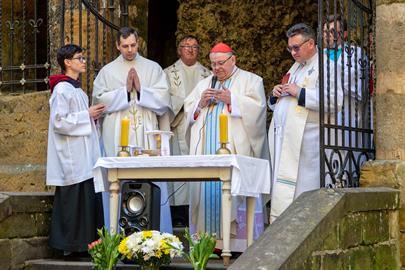 V neděli 1. května 2023 navštívil Jeho Eminence Dominik kardinál Duka Kunratice u Cvikova, aby v tamním Křišťálovém chrámu požehnal prapor kunratických dobrovolných hasičů a skleněné Pražské - Kunratické jezulátko, které vytvořil jeden z nejvýznamnějších současných uměleckých sklářů Jiří Pačinek. Poté emeritní Primas český a arcibiskup pražský přijal pozvání k obědu od svého hostitele J.M. can. Mgr. Rudolfa Repky na cvikovskou faru a k prohlídce místního kostela sv. Alžběty Uherské. Od 15 hodin u skalní kaple pak sloužil mši svatou mezi pískovcovými skalami pod širým nebem v Modlivém dole u Svojkova. Bohatého programu s panem kardinálem se účastnili také mnozí vzácní hosté, např. hejtman Libereckého Kraje Martin Půta s manželkou, starostové okolních obcí, zástupci záchranných složek a policie, a dobrovolných hasičů. Náročný a vydařený program kardinál Duka první den mariánského měsíce května ukončil soukromou návštěvou řádu Dominikánů v klášteře v Jablonném v Podještědí.