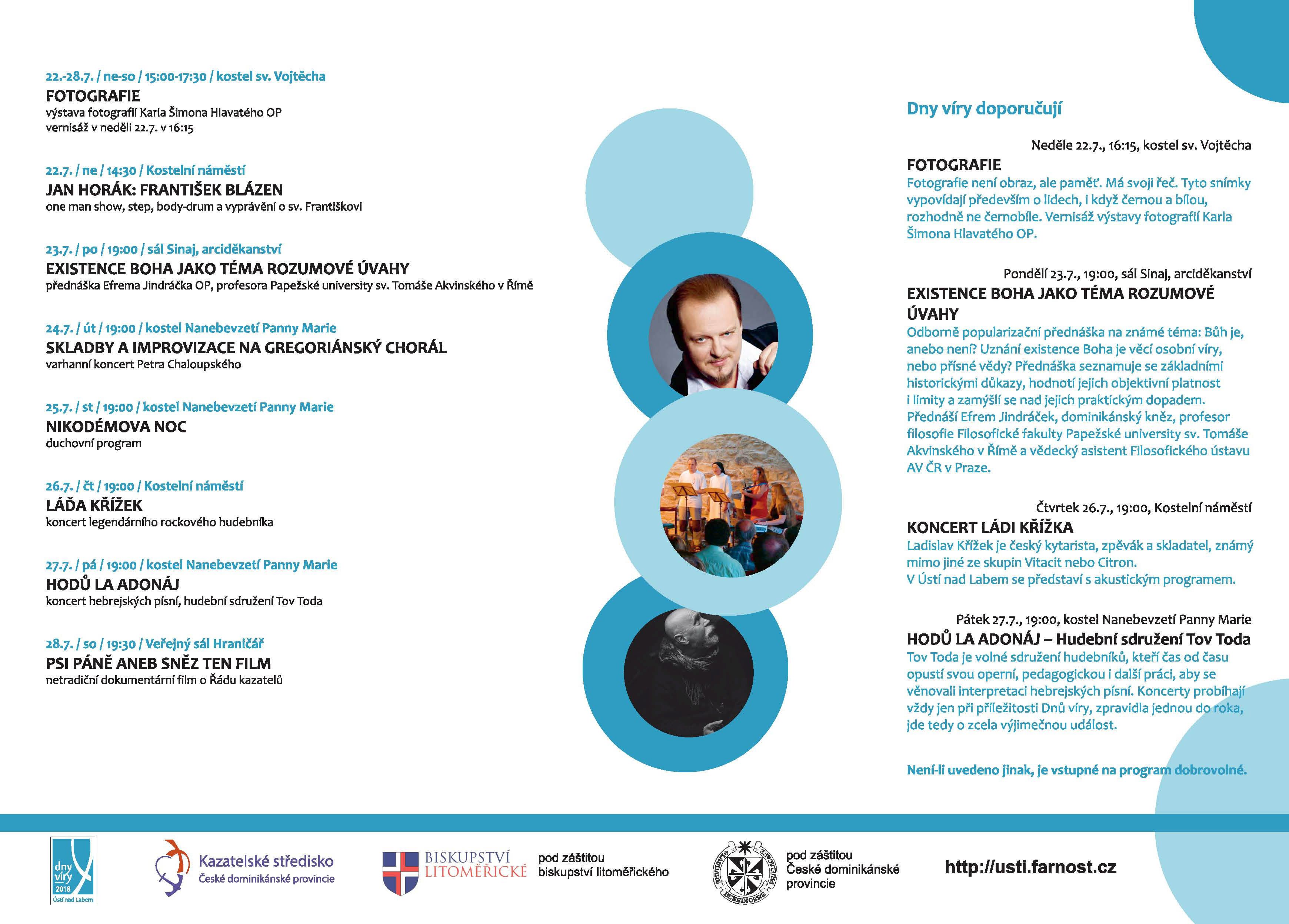 PROGRAM a kompletní informace o celé akci DNY VÍRY si můžete stáhnout zde: