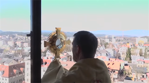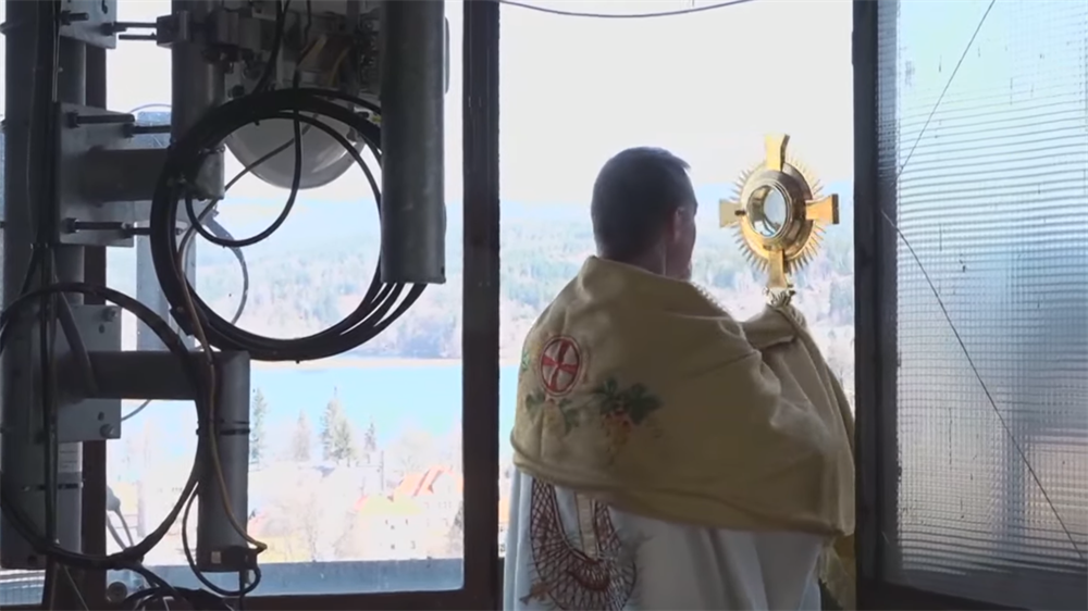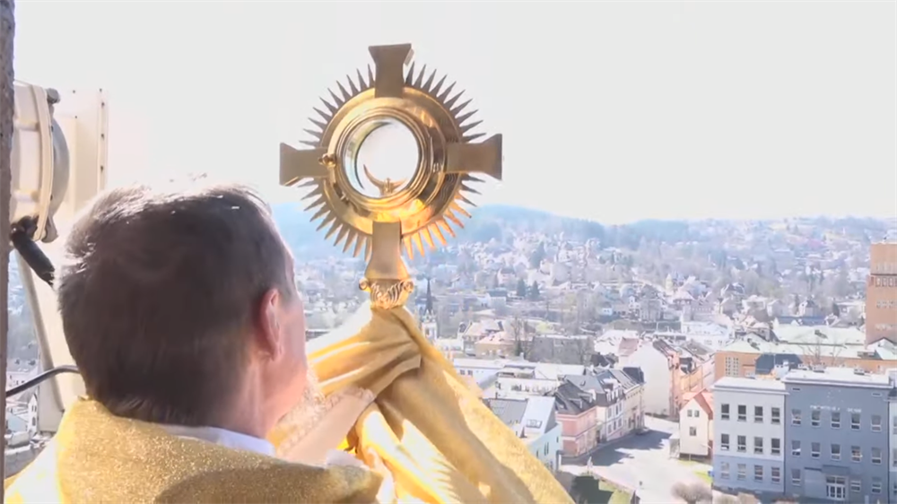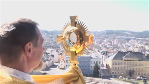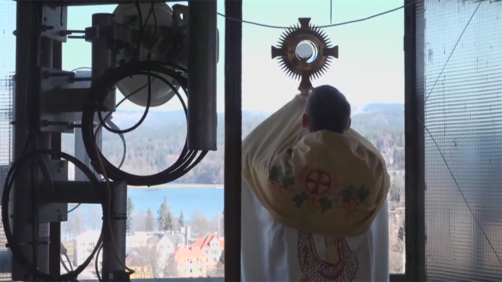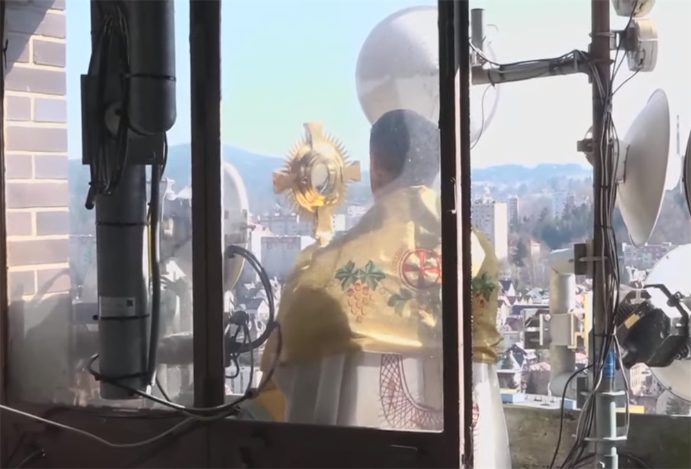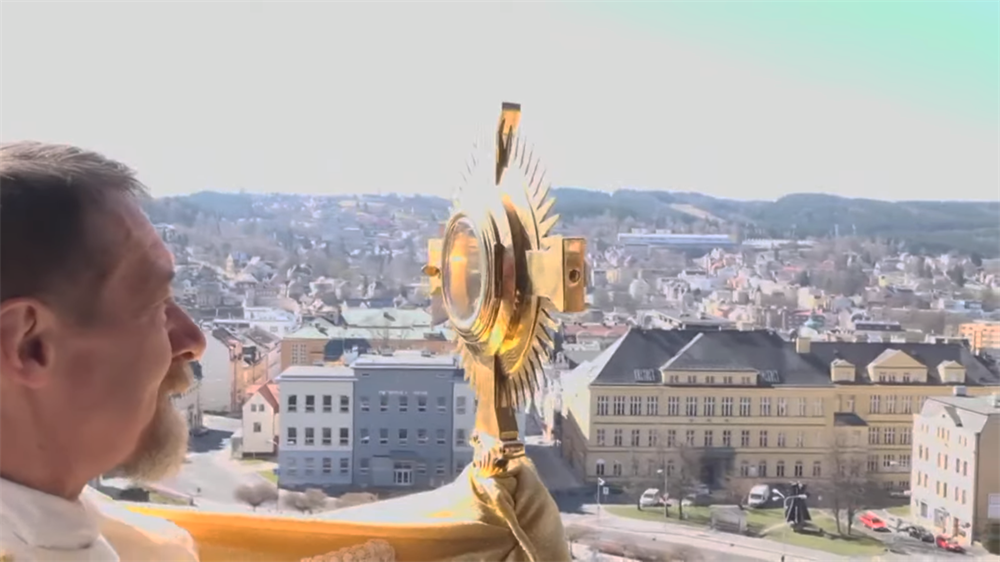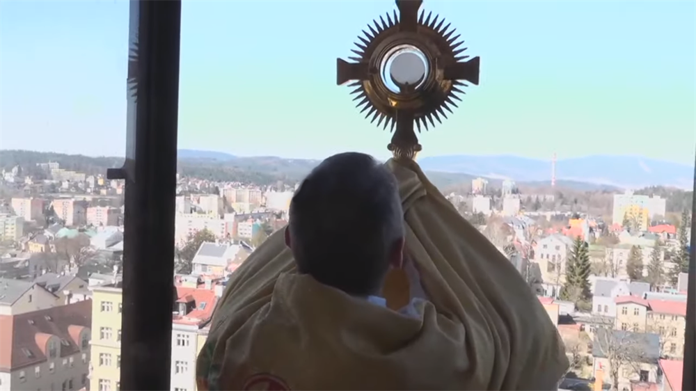 Jablonec nad Nisou, svátostné požehnání městu z věže kostela Nejsvětějšího Srdce Ježíšova