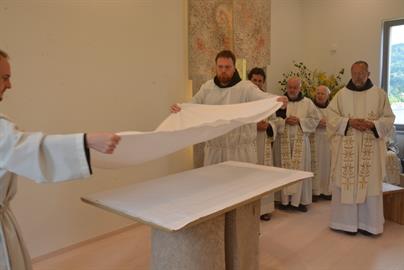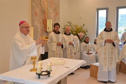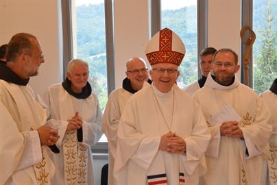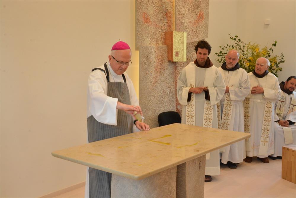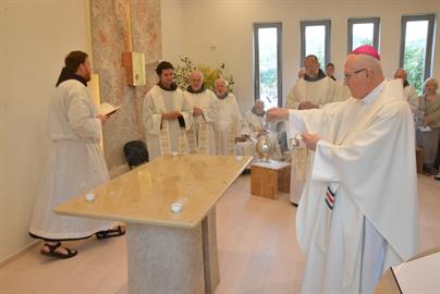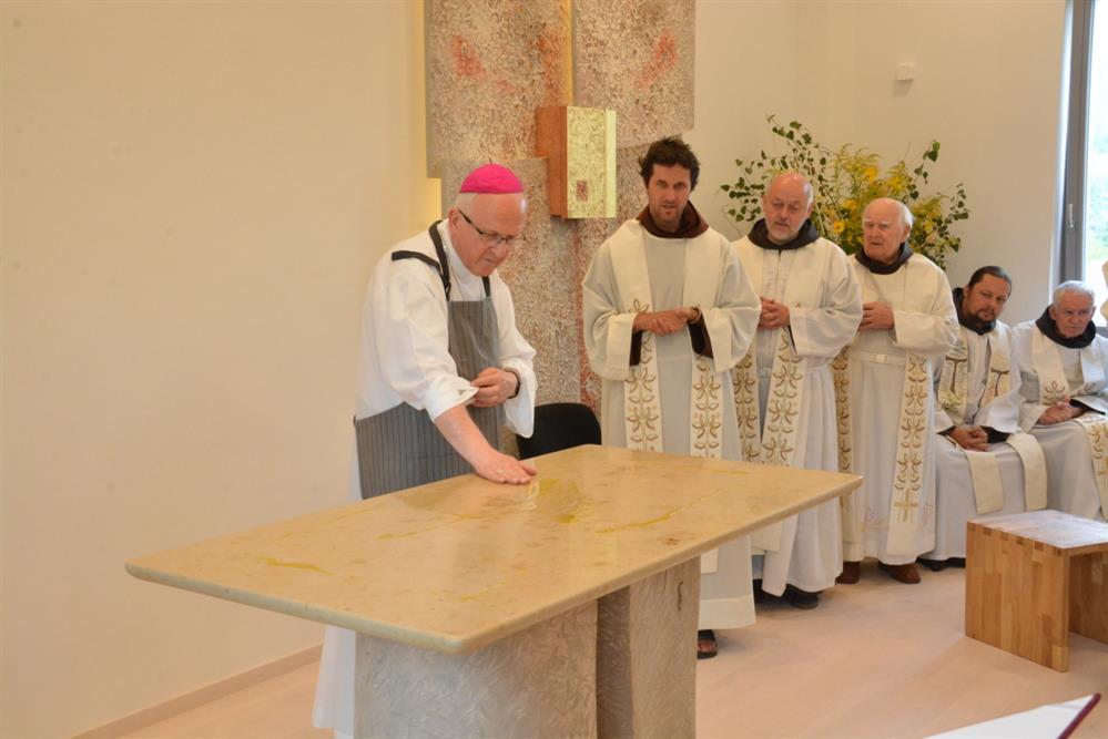 Otevření tzv. Domu přijetí v areálu komunitního centra při františkánském klášteře, slavnost s požehnáním objektu s kaplí a vysvěcením oltáře litoměřickým biskupem Janem Baxantem, 21. srpna 2017, Liberec-Ruprechtice