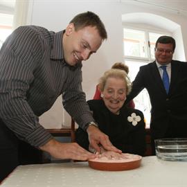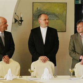návštěva bývalé ministryně zahraničních věcí USA Madeleine Albright v Terezíně a Litoměřicích, setkání s generálním vikářem litoměřické diecéze P. Stanislavem Přibylem CSsR, 22. července 2012