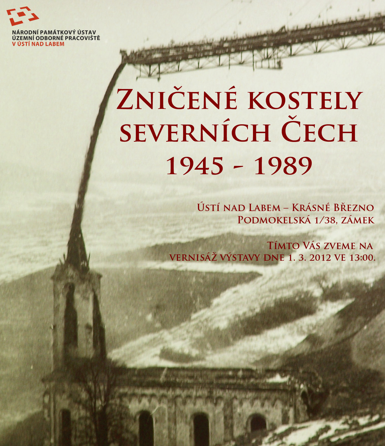 Harmonogram putovní výstavy „Zničené kostely severních Čech 1945–1989“Výstava „Zničené kostely severních Čech 1945–1989“ zavítá po svém prvotním představení v Praze také do jednotlivých oblastí, kde k ničení sakrálních památek došlo – v současné době je v Chomutově, v budoucích měsících pak bude představena v Litoměřicích, Teplicích, Rumburku, ale i v objektech Národního památkového ústavu v Ústí nad Labem, Mostě, Duchcově a dalších.