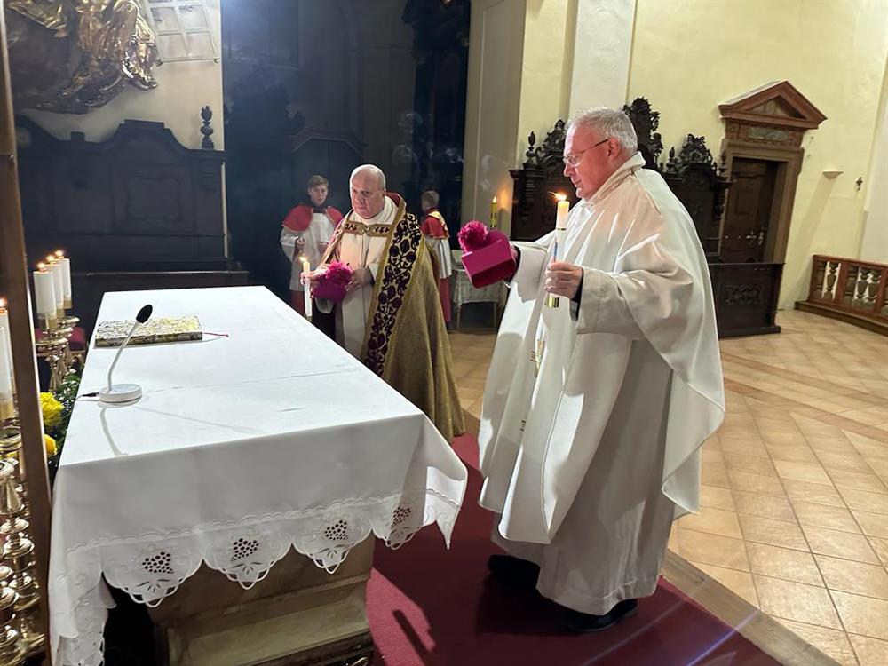 věnovali nový ornát, který si vzal na tuto mši na sebe. Po skončení bohoslužby
