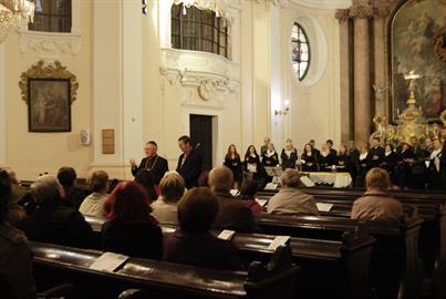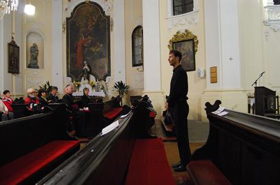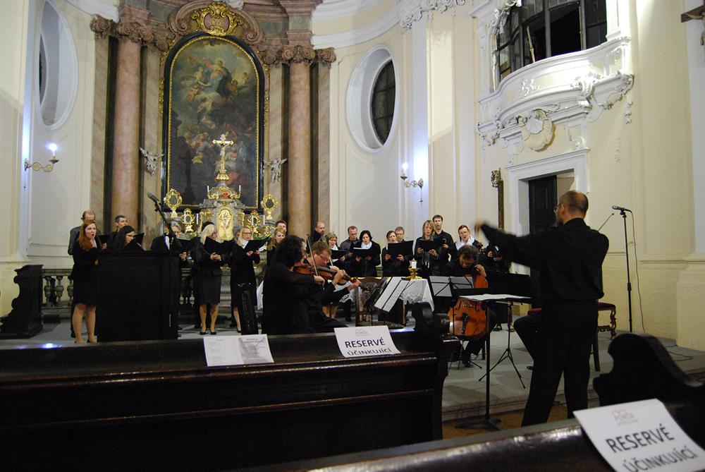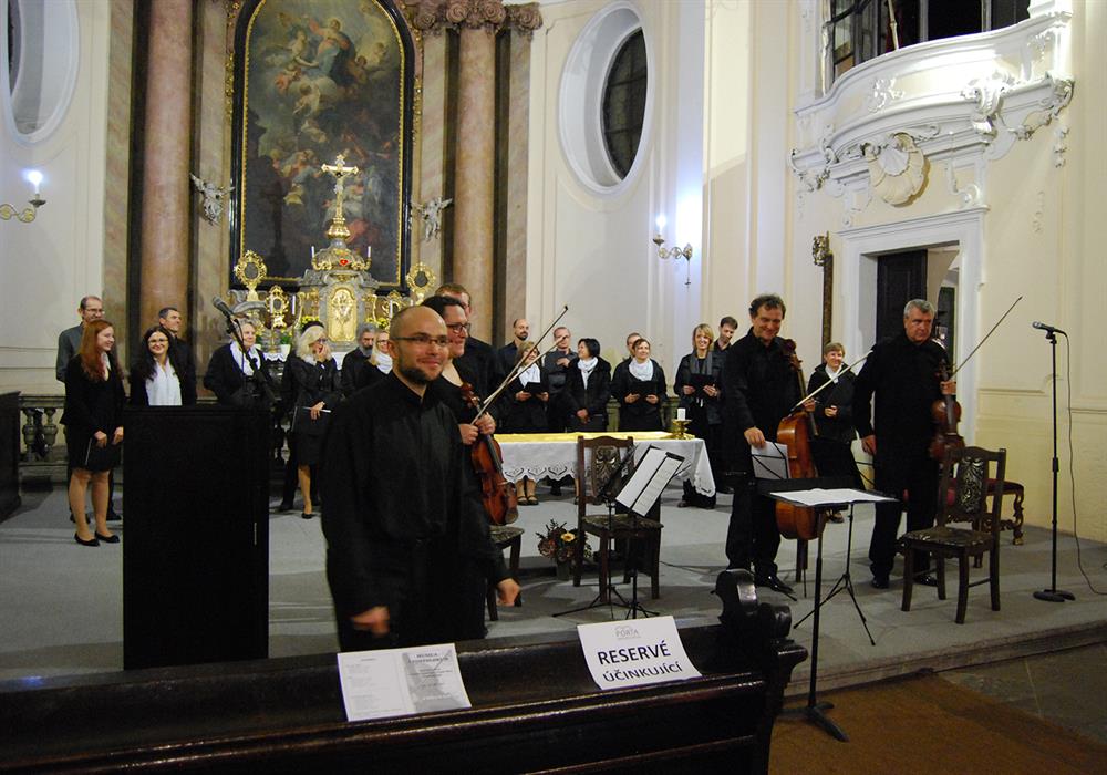 Josef Špaček a Chrámový sbor při kostele sv. Fabiána a Šebestiána v Praze –