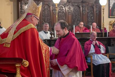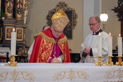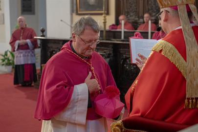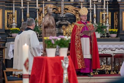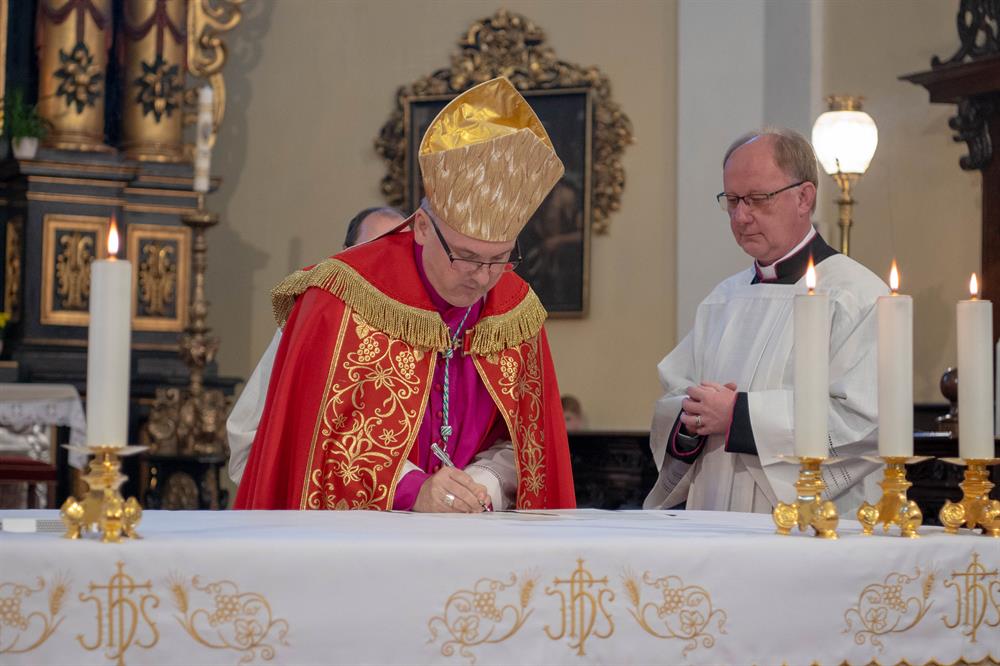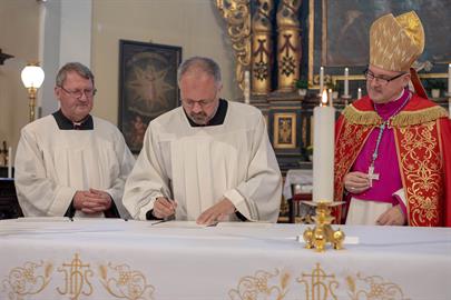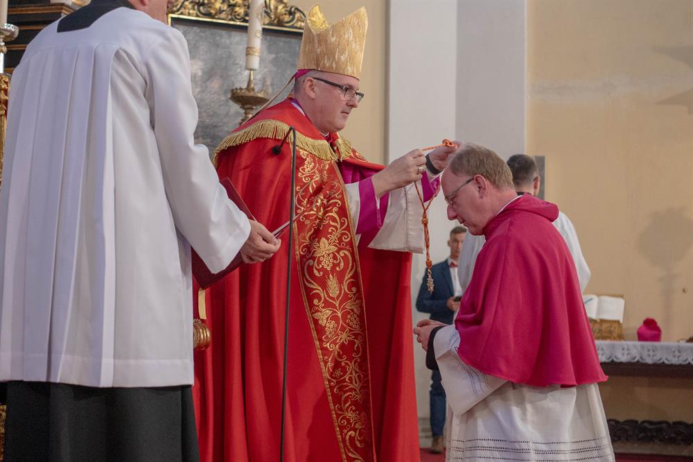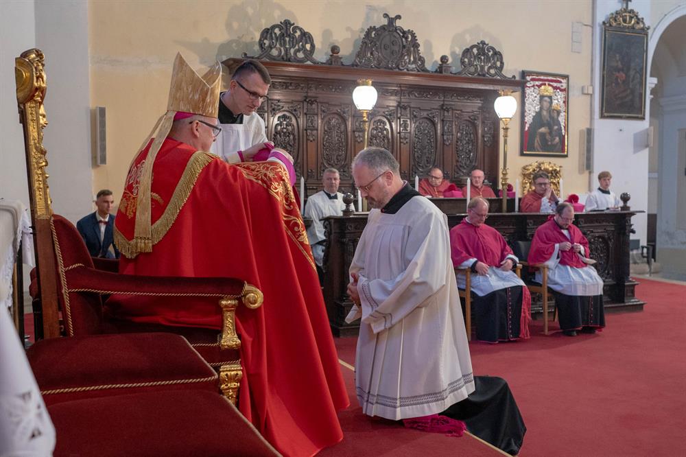 U kanovnických lavic přivítal biskupa probošt kapituly P. Józef Szeliga: „Děkuji, že je pro vás kapitula sborem pomocníků a přátel. Díky také za jmenování kanovníků ze sousedních diecézí, protože církev státní hranice nezná a spolupráce jí vždy prospívá.“