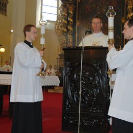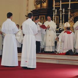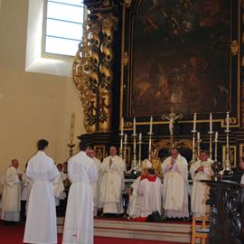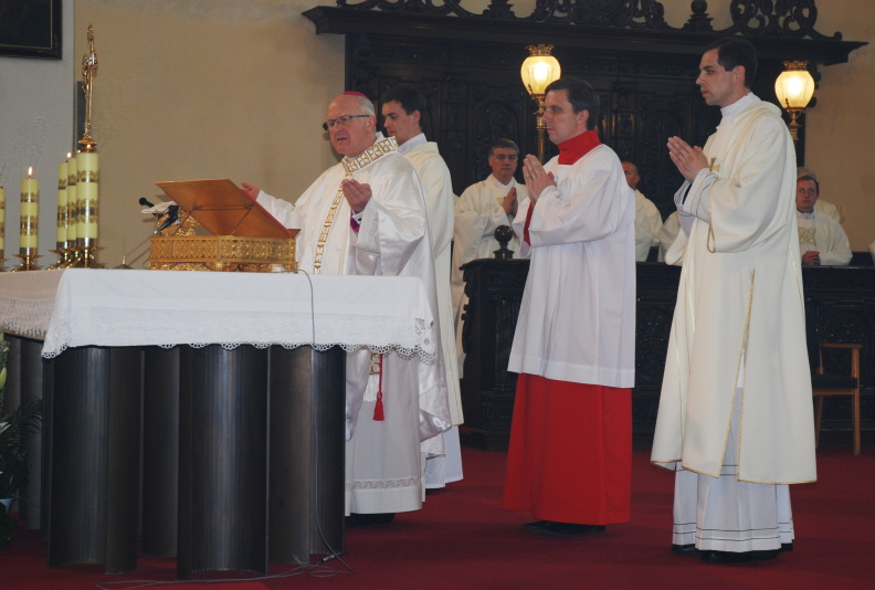 jáhenské svěcení (bohoslovci litoměřické diecéze Ing. Pavel Morávek a Josef Peňáz), litoměřický biskup Jan Baxant, 14. července 2012, katedrála sv. Štěpána, Litoměřice