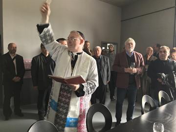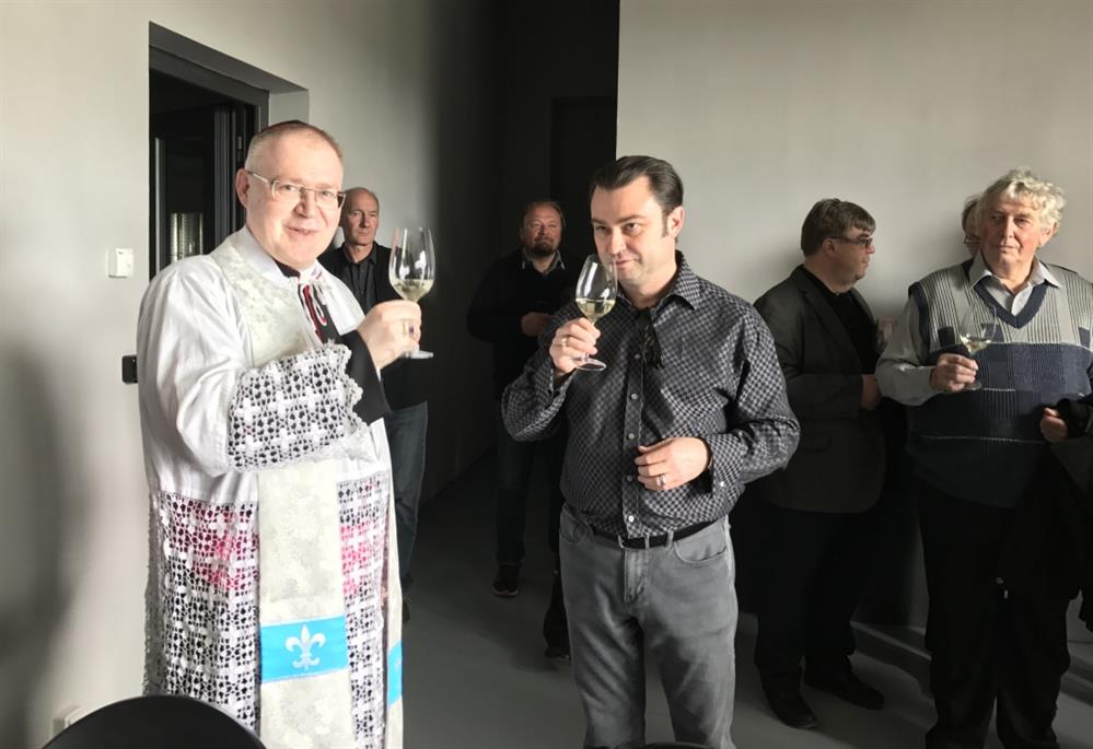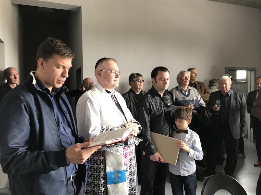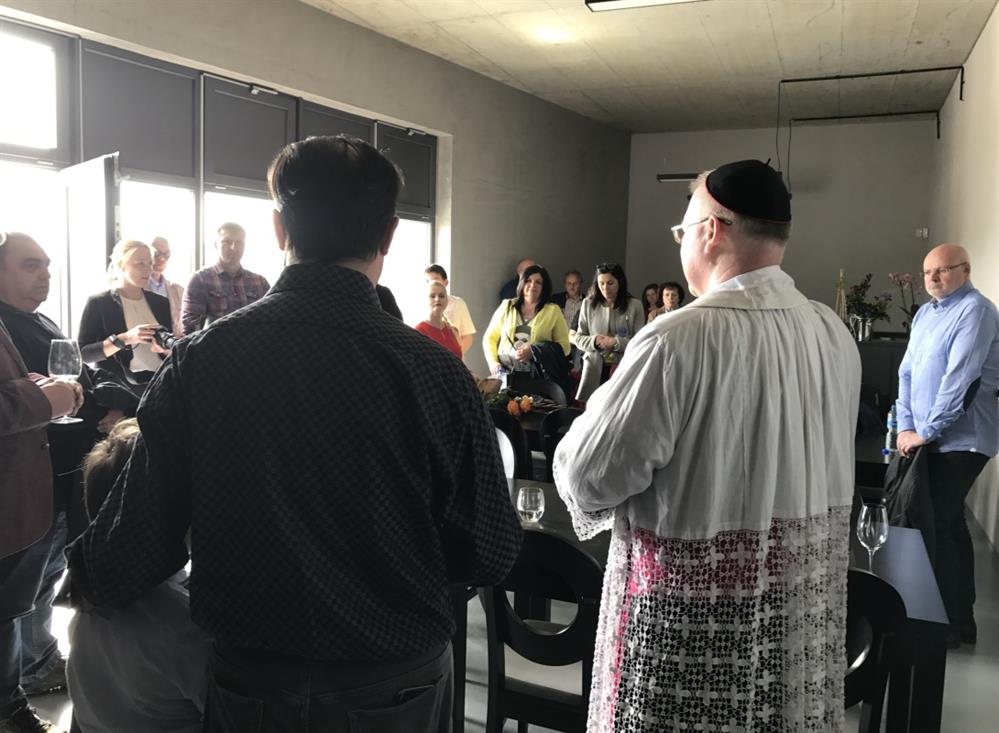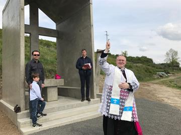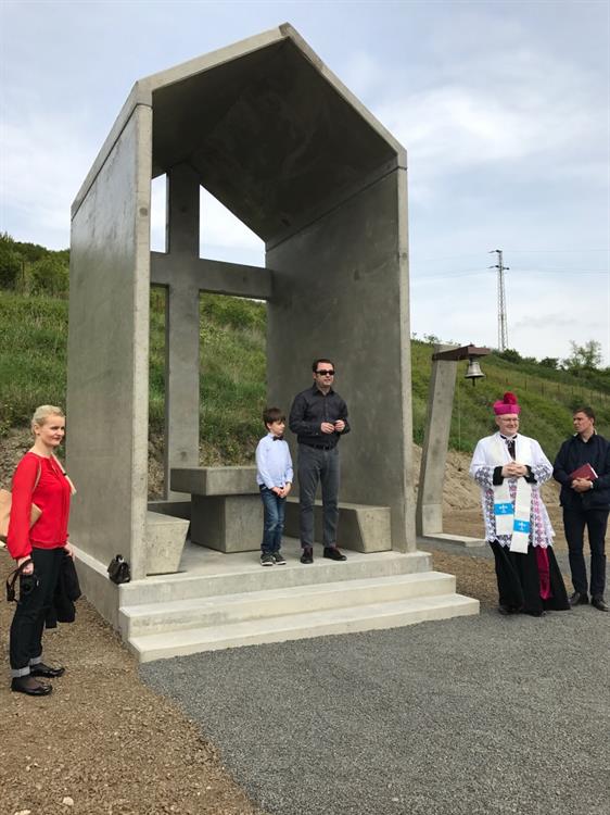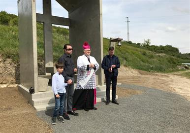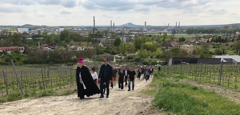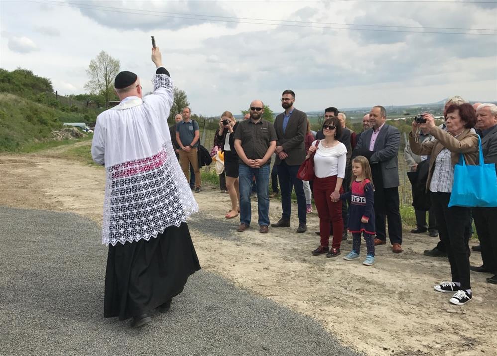 Žehnání kaple a zvoničky, zasvěcení kaple sv. Štěpánu - prvomučedníku, generální vikář Mons. Martin Davídek, 3. května 2017, vinice Vinařství pod Radobýlem, Žalhostice u Litoměřic