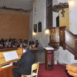 zpřístupnění kostela veřejnosti po čtyřech letech po pádu jeho věže, R.D. Rudolf Prey, klavírní koncert - Vladimír Heuler, 28. října 2012, kostel sv. Šimona a Judy, Lenešice