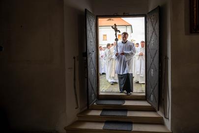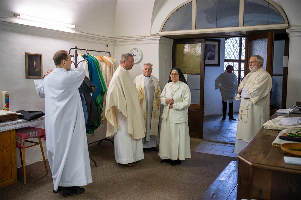 povolání. Shromáždili se nejdřív na klášterní zahradě a pak kolem oltáře.